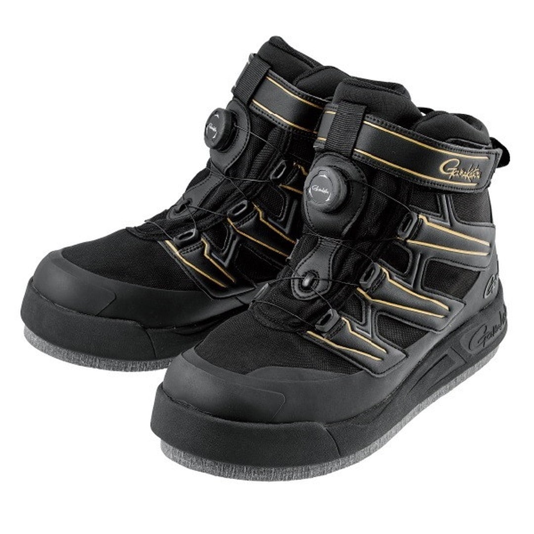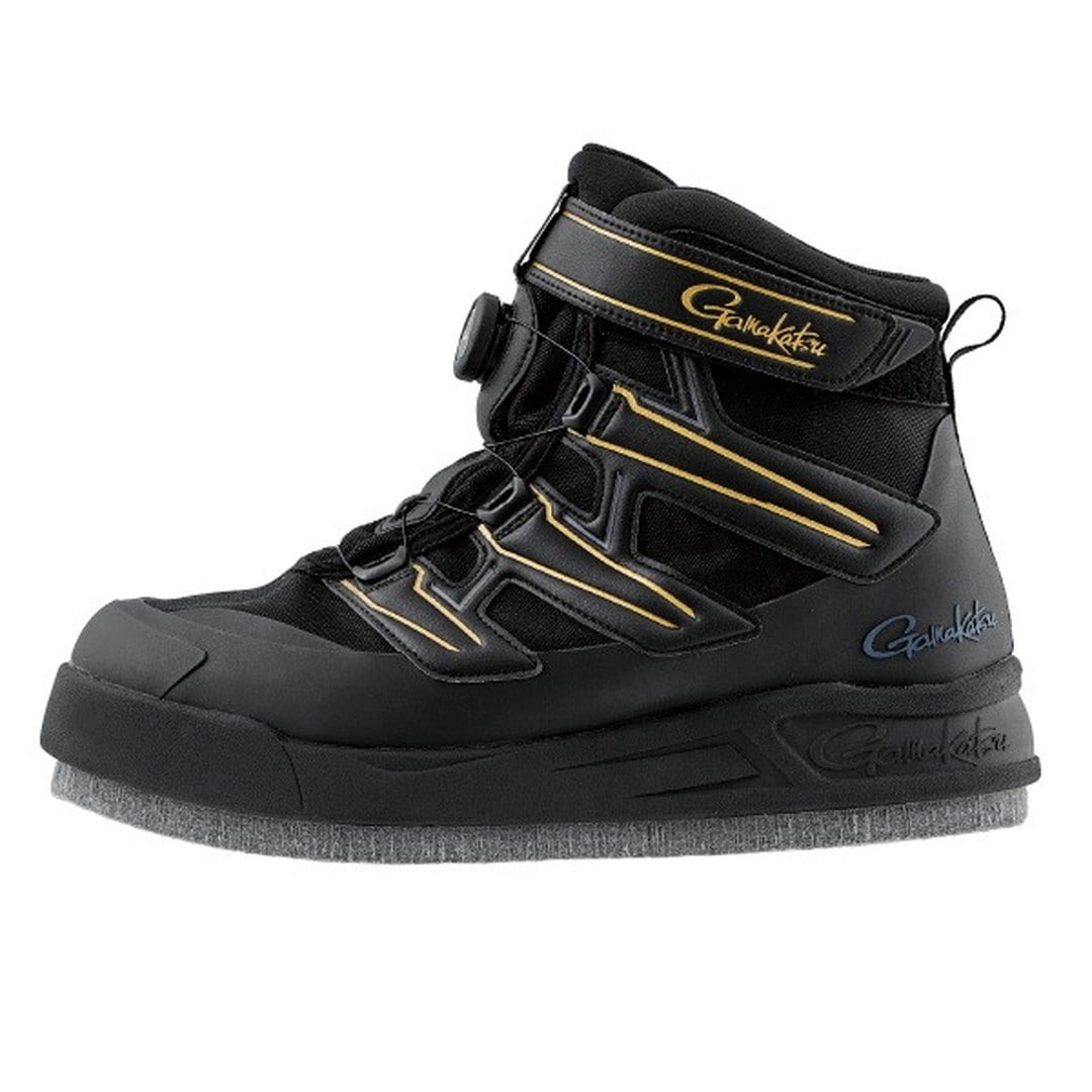 透湿防水機能を持ったフェルトスパイクシューズ。素早い着脱とフィット感の調整が可能なSPINONアルティメイトレイシングシステムを搭載。●ワイヤーによりシューズ全体を包み込むように均等に締め付け、高いフィット感を実現。磯場などで長時間着用してもワイヤーの効果で足の動きにフィットし、安定した甲部から足首までのホールド感を持続します。ダイヤル操作にすることによりミリ単位の細かい調整が可能。時期、状況に合わせて最適なフィット& ホールド感を実現します。ダイヤルを引き上げることで、解除が可能。●従来のシューズを見直し、釣りに特化した設計を実現しました。足首をしっかりホールドすることで、磯場でのフットワーク性に優れ、疲労を軽減します。●内部と足首回りのクッション性を大幅にアップし、釣り中の足への負荷を軽減します。●横幅を3Eに設定し、日本人の足に合わせた横広設計で、着用時の安定感が向上しました。●素早い着脱とフィット感の調整が可能な面ファスナーベルト仕様。磯の上、釣り中でも素早いフィット感調整が可能です。