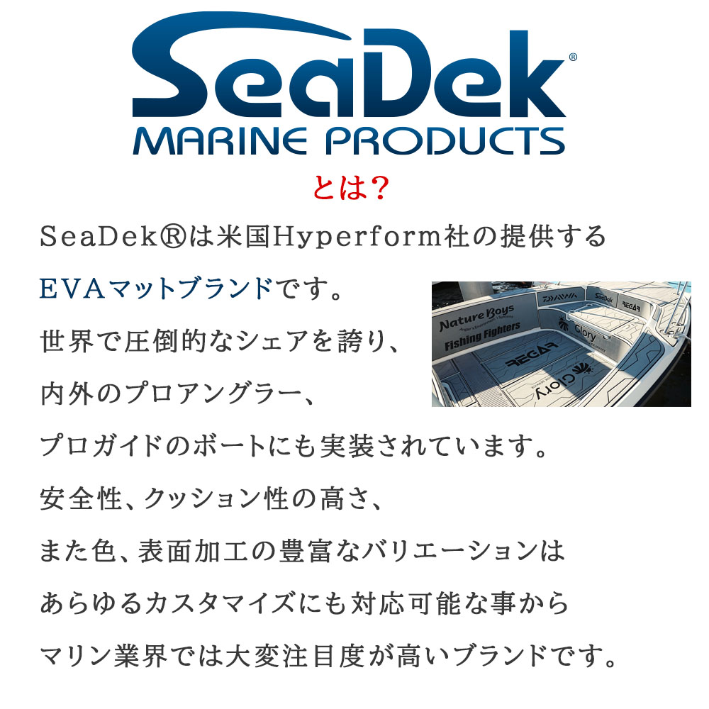 【Sea Dek】EVAマットで圧倒的な世界シェア!SeaDekとは米国Hyperform社の提供するEVAマットのブランドであり、世界で圧倒的なシェアを誇ります。クッション性が高く、疲労感の低減、FRP面の保護、騒音の低減、また濡れても滑りにくく安全性を高めます。【タックルボックス TB7000】質実剛健、タックルボックス。収納性はもちろん、堅牢性を備えた座れるタックルボックス。使い勝手のよい両開きタイプのフタは開けた時フタ角度が90度で止まる。プライヤーなどの小物をチョイ置き出来るインナートレー内蔵。本体サイドにはロッドスタンドTBなどに対応した多目的ホルダーを装備。スベリ止めシール付き。
