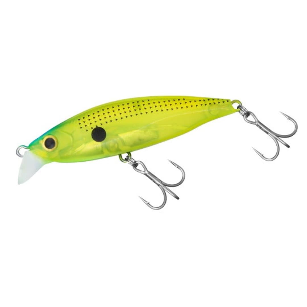 干潟等シャローのデイゲームに最適。リトリーブ速度で変わる可変アクション&高比重コンパクトシンキングミノー。スローではシンキングペンシルのようなスイングアクション、ファストではバイブレーション的なハイピッチタイトウオブンロールアクション。バイブレーションでは攻略が難しい流れの中でもレンジキープさせ易い。明滅効果の高いハーフスケール&セミフラットサイドボディ仕様。千葉の「シャローマスター」山内モニター監修モデル。