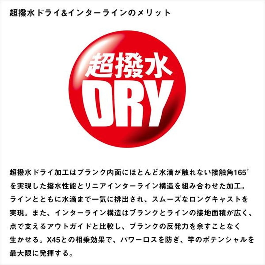 最高峰のテクノロジーを搭載したスタンダードインターライン磯竿モデル。水滴を弾く超撥水ドライ加工を施し、ロッド内部にはほとんど水滴が残らず、高いライン放出性を実現。雨や波しぶきなどによるロッドへのラインの張り付き、不快な糸ガラミも防ぐインターライン構造により、荒天時や夜釣りでもストレスのない釣りが可能。魚を掛けてからはしなやかに曲がり込み、魚を暴れさせずにスムーズに浮かせる。