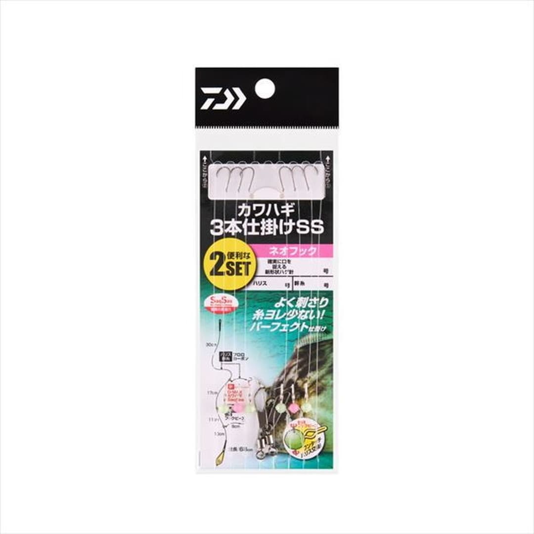 快適フックビーズを使用したカワハギ3本仕掛けがリニューアル。ハリス交換が簡単なビーズ付き3本仕掛けがお求めやすくなり再登場。針は驚異の貫通力 サクサスフック使用。スピード、パワースピード、パワーフック、ネオフック、パワーマルチの5タイプから選択可能。■ネオフック・・・スタンダードハゲ針。