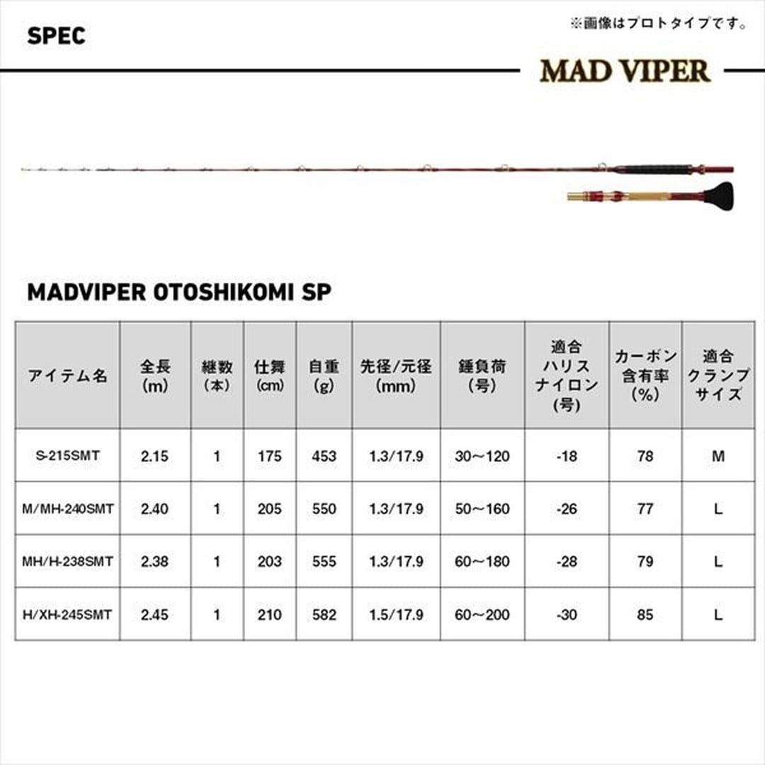 落とし込み釣りに求められる、ベイトの付きを判断できる感度と、大型青物とも真っ向勝負できるパワーと粘りという相反する要素の双方を最高クラスで両立。ベイトが付きやすく外れにくい柔軟な「SMT」と穂先部の「AGS」による類まれなる目感度と手感度により、いかなるベイトの状況も手に取るように判別が可能。本作は軽さ・粘り・しなやかさを実現する超高密度グラスSVFグラスを織り交ぜた細身肉厚設計とすることで、大型青物にのされないパワーは勿論、ハリスをいたわりながら疾走を止める粘り性能が格段に向上。また、高強度アルミリールシートは大型リールを装着しても、安心感のあるファイトを実現。■M/MH-240SMT・・・食い込みのよい穂先と、大型青物にものされずにタメが利くパワーを備えたオールラウンドモデル。