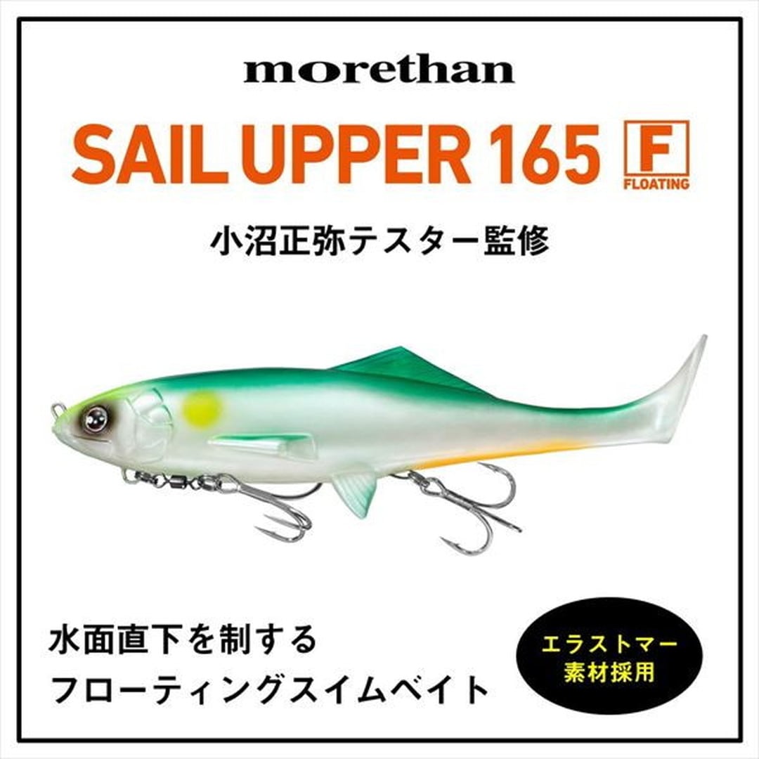 小沼正弥フィールドテスター監修。水面直下を制するフローティングスイムベイト!セイルアッパーはソフトエラストマー素材を採用しており、ハードルアーを見切ってしまうスレたシーバスでも反応させることができるフローティングスイムベイト。ソフト素材と逆付けテールはデッドスローリトリーブでもテールを振り子のようにしっかりと左右に振り、高い集魚効果を誇る。着水音に関してもハードルアーに比べナチュラルで、まるで魚がはねたような音であることからキャストを重ねてもスレにくいのが特徴。特に落ち鮎やコノシロなどのベイトについた大型シーバスを狙う際、ハードルアーとは違う引き出しとして是非ご使用いただきたい。