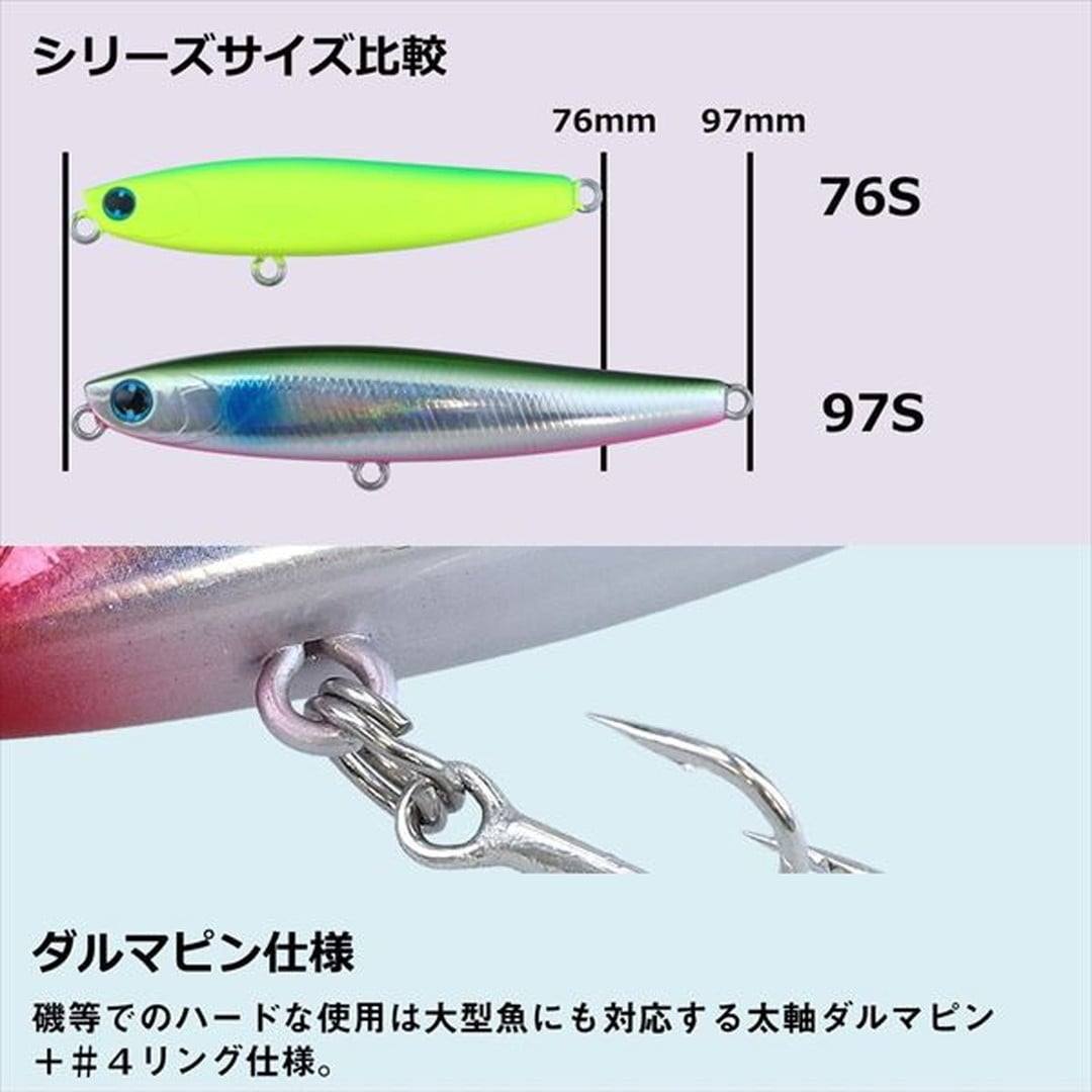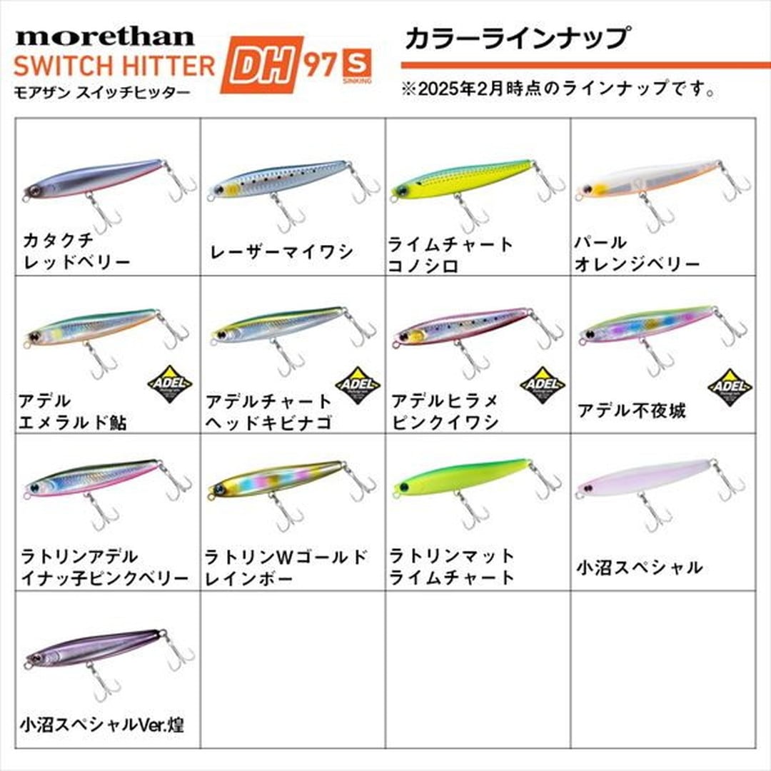 小沼正弥監修。「DH=指名打者」の名を冠した「飛距離第一主義」のホームランバッター。向かい風や横風、爆風時、ここ一番の遠投のために開発したヘビーシンキングペンシル。「飛距離第一主義」をコンセプトとし、ジグ級に飛ぶので、ミノーでは届かない遠くのボイルや潮目も射程範囲内。浮き上がりも早く、大河川、サーフ、干潟、磯、河口等の水面直下やシャローエリアを昼夜問わず攻略する。