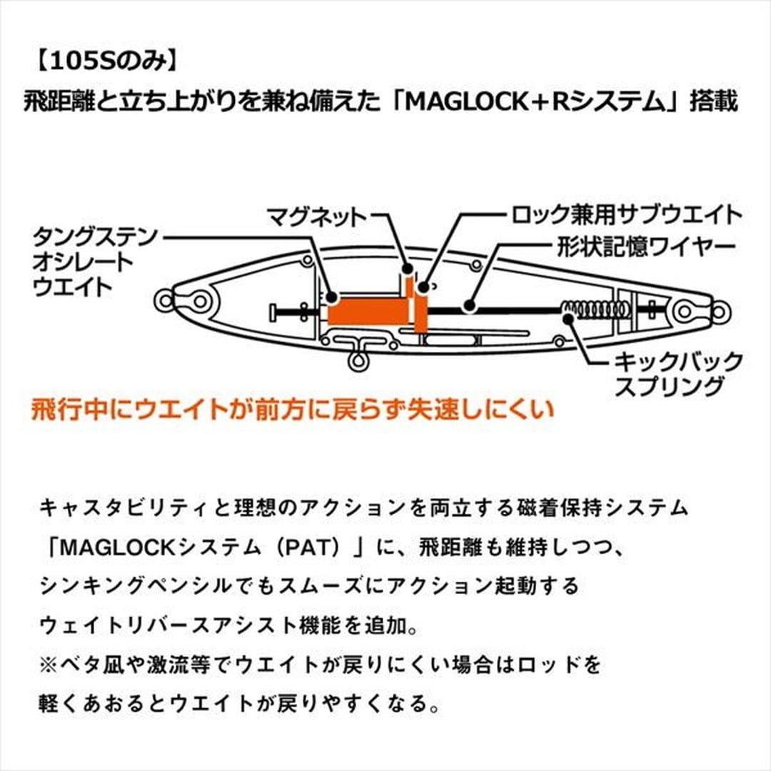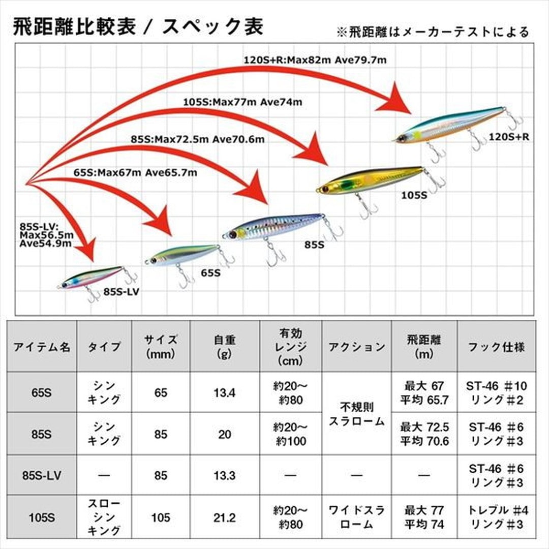 小沼正弥監修モデル。デイ&ナイト、いつでもどこでもピンチな時にもスイッチヒッター。河川やサーフ・磯・干潟などのシャローエリアや水面直下を簡単に攻略できるデイ&ナイト対応シンキング&スイミングペンシル。ジグ並みに飛距離が出るので、ミノーでは届かない遠くのボイルも射程範囲に収める。コノシロ・落ち鮎・イワシ・イナッコ・ハタハタ等様々なパターンに対応。アクションは流れに敏感かつ不規則なスラロームアクション。操作方法は、昼夜に関係なくスローリトリーブのタダ巻きのみ。プレッシャーが高い激戦区のフィールドで使用する時は、ダウンクロスではなくアップストリームキャストをオススメします。流されてくる小魚がシーバスの斜め前に現れるようなイメージでトレースさせるのがコツ。サーフ・磯・漁港・湾奥・都市型河川・河口・干潟・ボイル打ち・そしてピンチな時など、様々なフィールドでお試しいただきたい。
