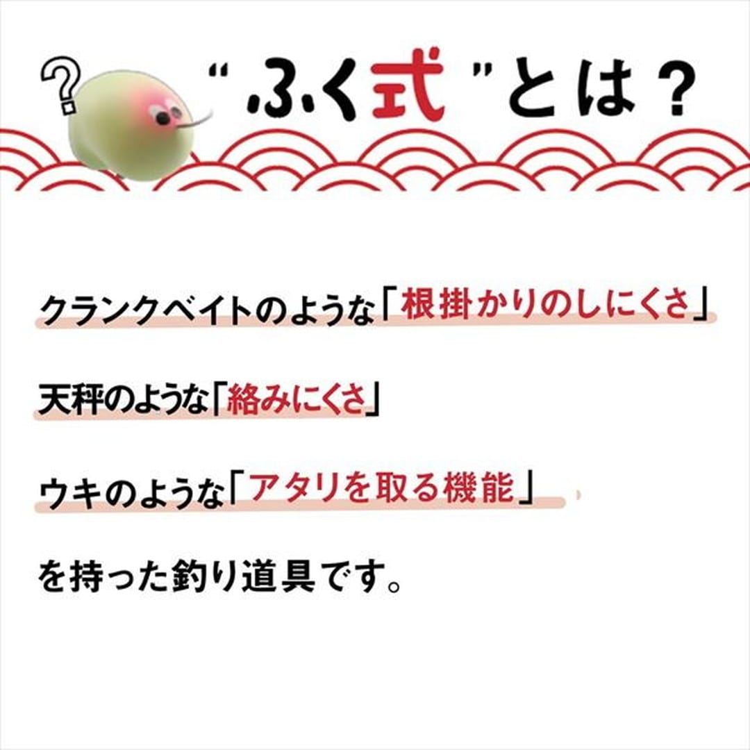 投げて置いとくだけで「ふく」が来る。ふくシリーズにエサ釣り兵器が登場。クランクベイトのような「根掛かりのしにくさ」、天秤のような「絡みにくさ」、ウキのような「アタリを取る機能」を持った新しいジャンルの釣り道具。釣れる魚は全てを対象魚。外道のない釣りの世界を「ふく式」で楽しんでみませんか●