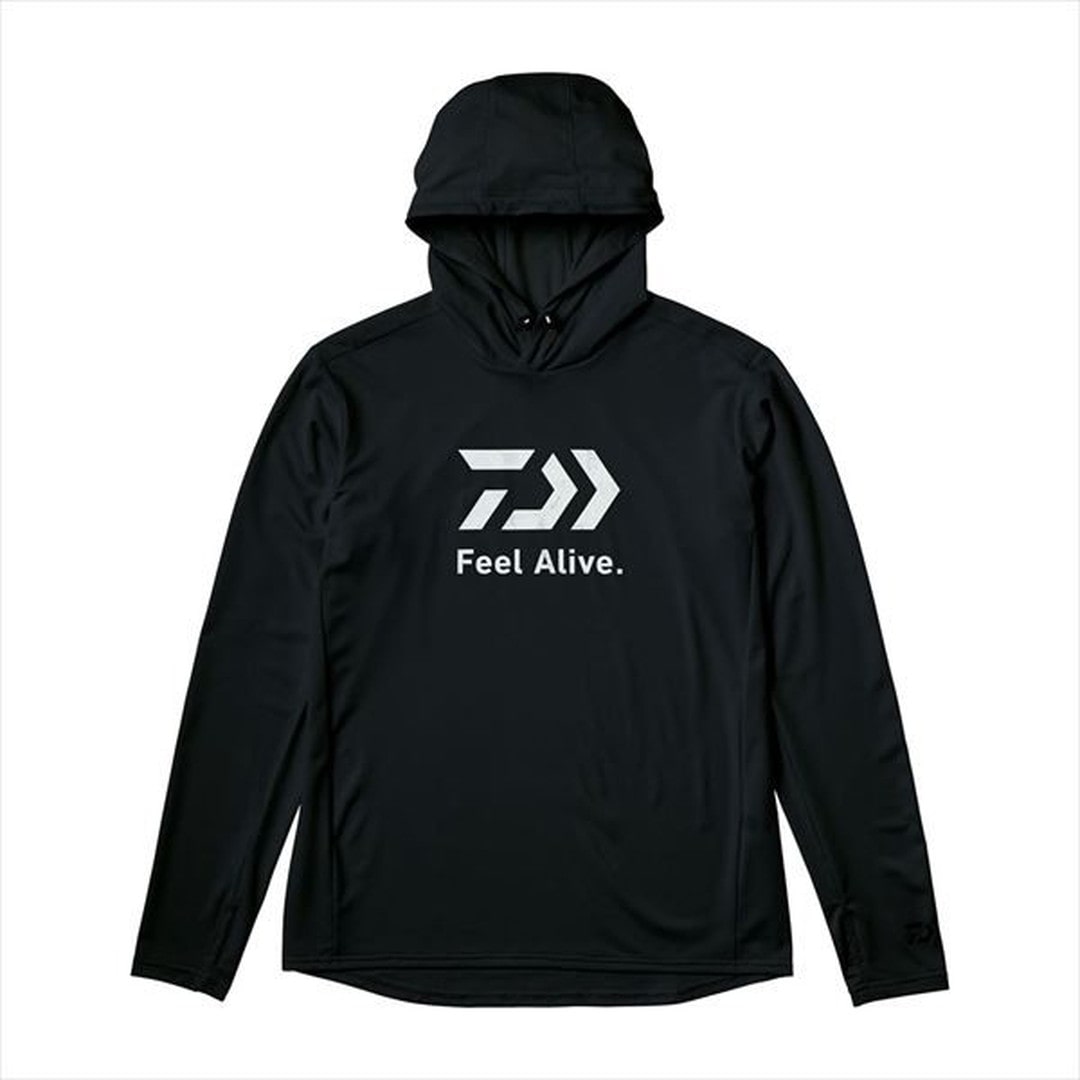 太陽光から肌を守り、心地よいドライ感が続く。春夏シーズンに最適なUVケア、吸水速乾機能付き。本体素材の肌面側凸部分に撥水糸を使用することで吸水機能はそのままに、汗によるべたつきを抑制し、快適な着心地を継続する。ポリエステル100%で軽量ながらストレッチ性があり、動きの多い釣りでも快適に着用できる。フード先にはスピンドルアジャスターを搭載。強風時のフードのバタつきを軽減する。袖丈は若干長めに設定し、袖口にはフィンガーホールを設け、手首周りに生じがちな隙間の日焼けを予防。