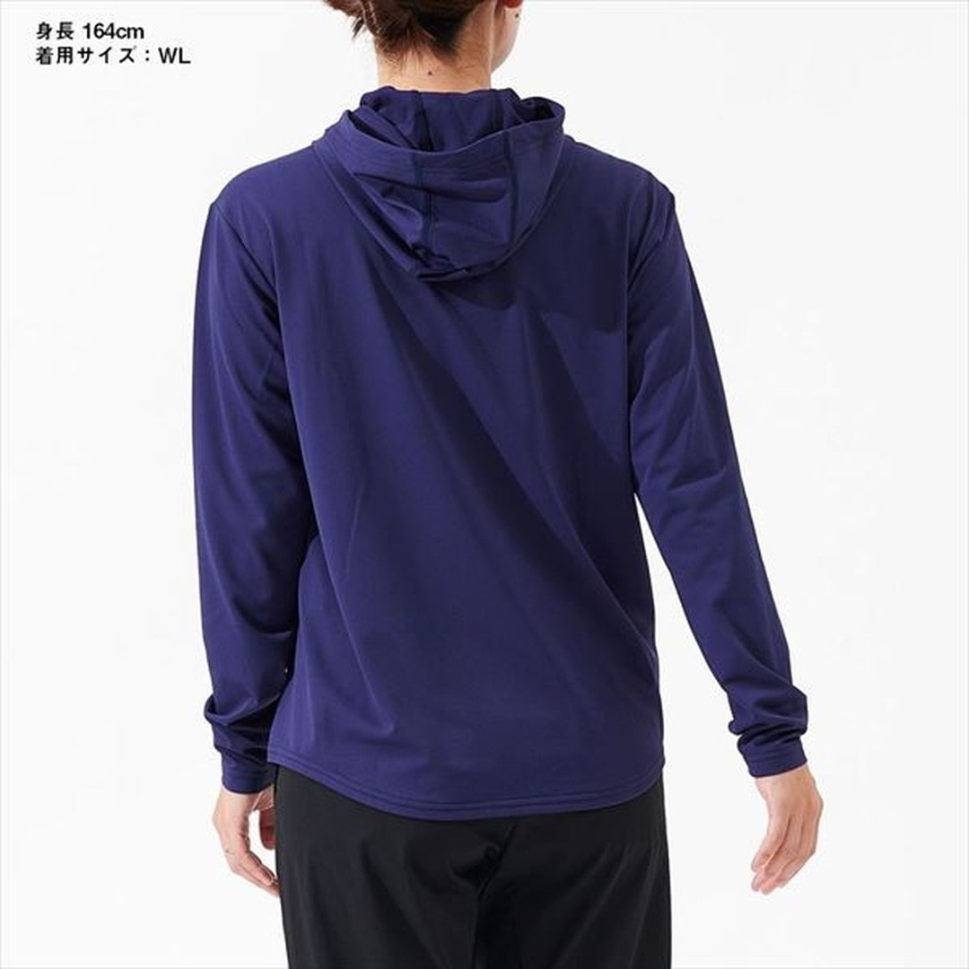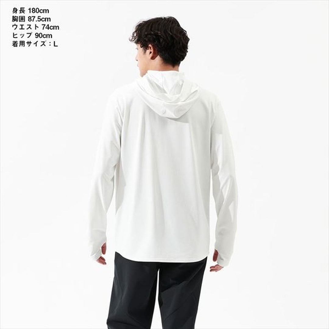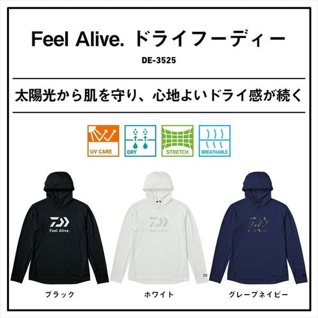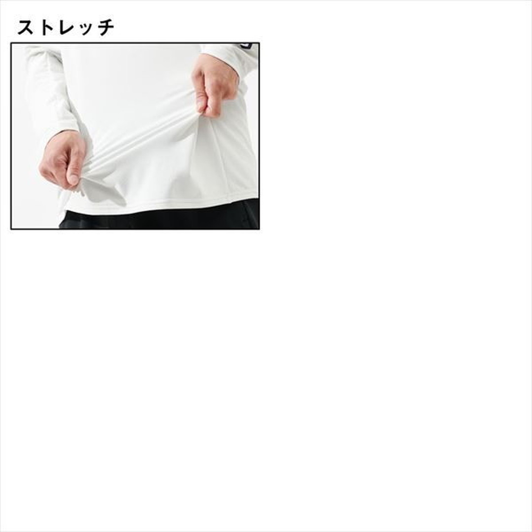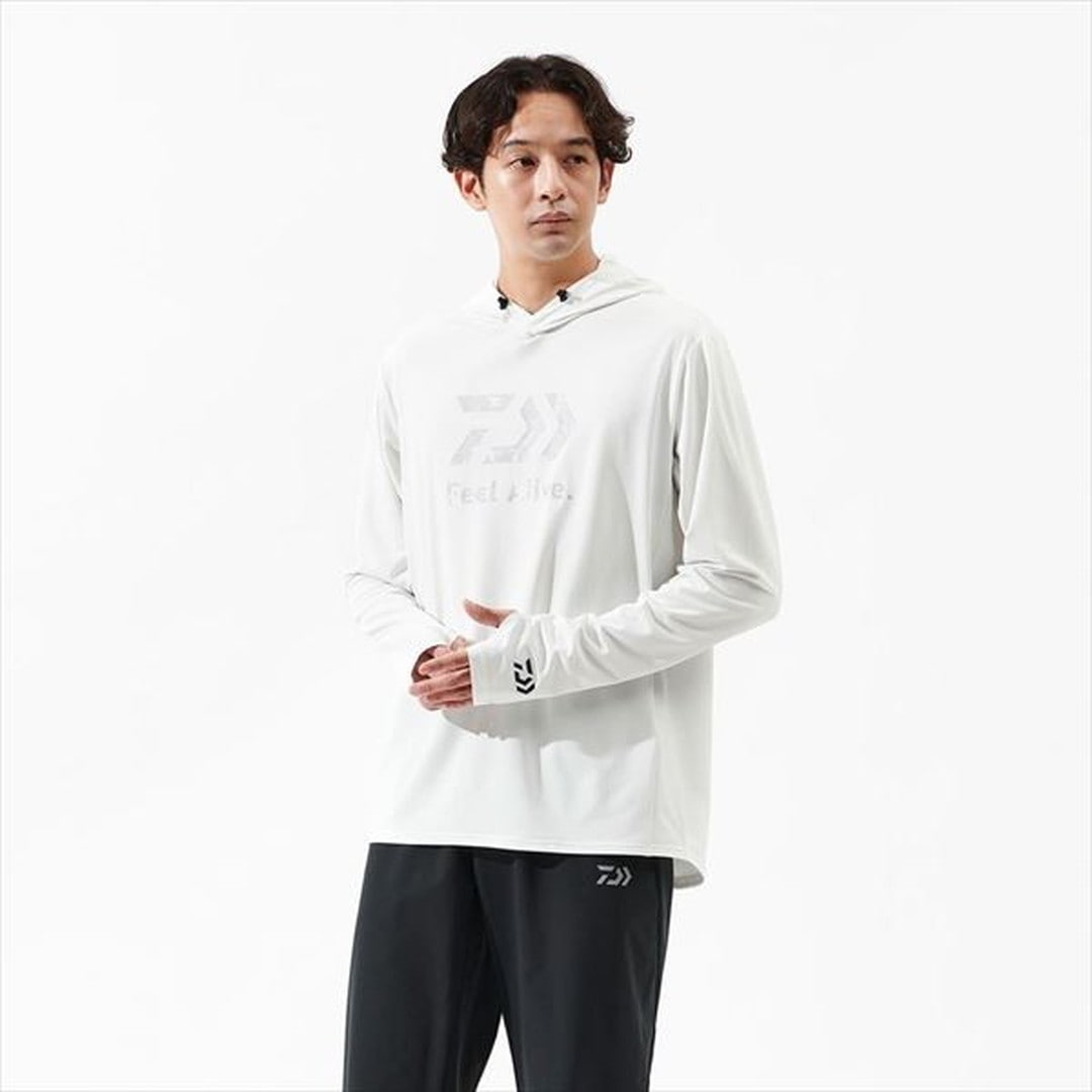 太陽光から肌を守り、心地よいドライ感が続く。春夏シーズンに最適なUVケア、吸水速乾機能付き。本体素材の肌面側凸部分に撥水糸を使用することで吸水機能はそのままに、汗によるべたつきを抑制し、快適な着心地を継続する。ポリエステル100%で軽量ながらストレッチ性があり、動きの多い釣りでも快適に着用できる。フード先にはスピンドルアジャスターを搭載。強風時のフードのバタつきを軽減する。袖丈は若干長めに設定し、袖口にはフィンガーホールを設け、手首周りに生じがちな隙間の日焼けを予防。