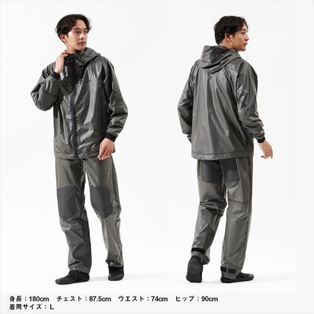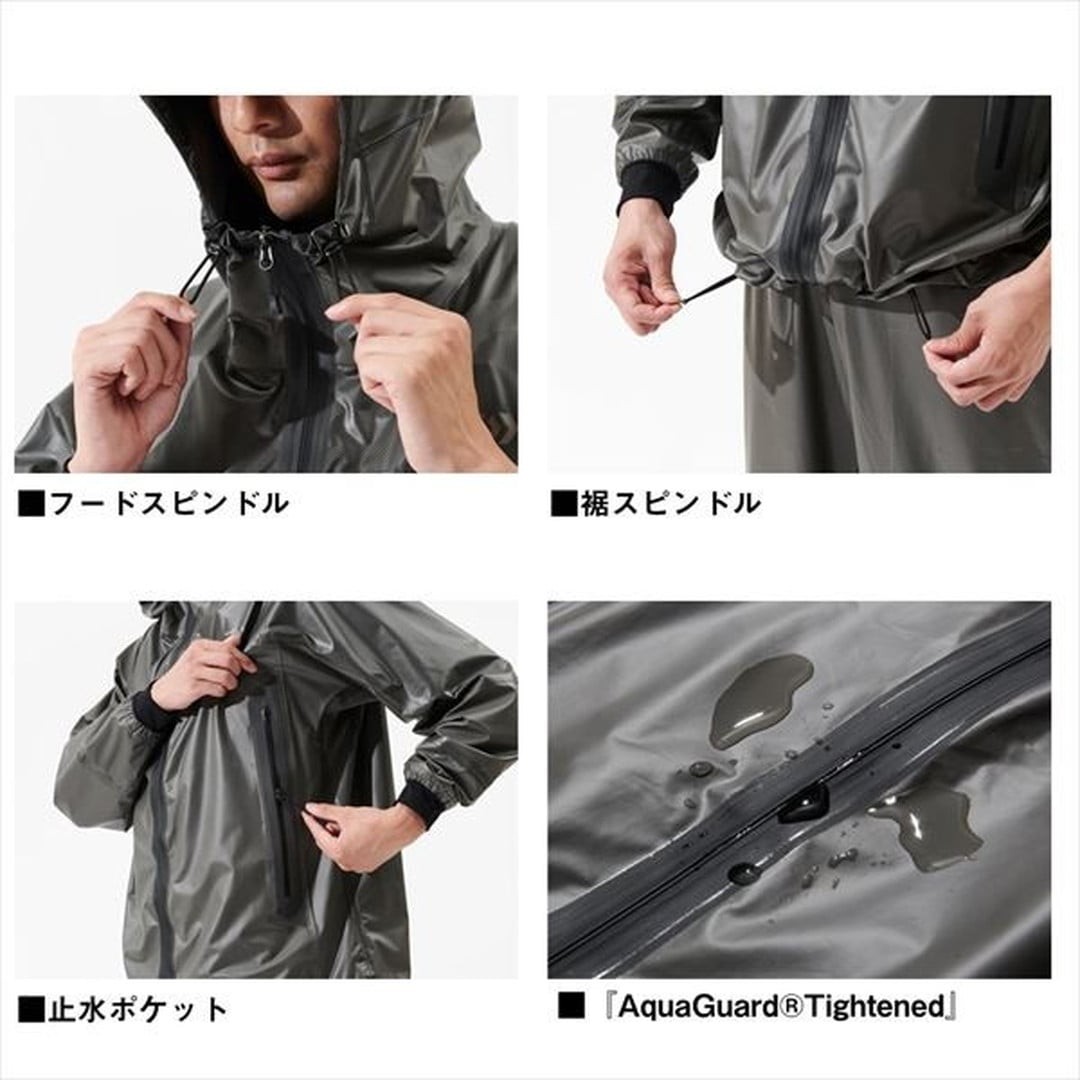 汚れの付きにくさと透湿性を兼ね備えたレインウェア。汚れや海水が付いても、水でさっと洗えば落ちやすい素材を開発。表側に防水層をもってくることで、水が生地に染み込まず、ドライで乾きやすい。PU、PVC等の船レインと比べ、透湿性があるため、衣服内が蒸れにくく、気温の高い時期でも快適に着用可能。船レインと比べ、シルエットをスリムにすることができ、動きやすい。フロントファスナーには、YKKとの開発で実現した「AquaGuard Tightened」をいち早く搭載。特殊な構造により、従来の止水ファスナーより耐水性が大幅に向上。それにより、ファスナー下の持ち出し(生地)をなくすことができ、よりしなやかに、軽量化に成功。袖口は防水性を向上させながら、袖口面ファスナーをなくした1重袖仕様で糸等の引っ掛かりを軽減。