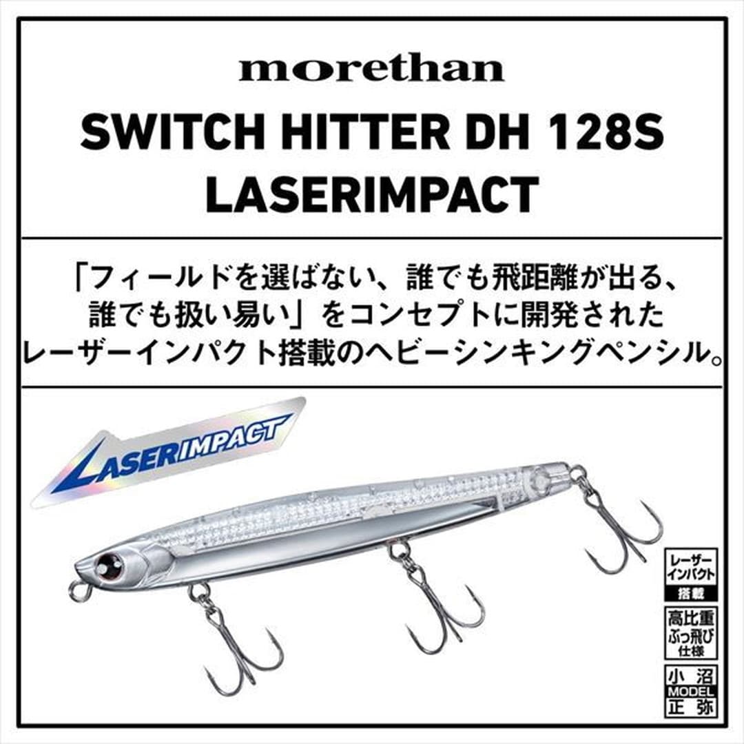 「フィールドを選ばない、誰でも飛距離が出る、誰でも扱い易い」レーザーインパクト搭載。DH=指名打者の名を冠した「飛距離第一主義」のDHシリーズに128mm/45gのブッ飛びモデル登場!「向かい風、横風、爆風」など荒天下においても安定感抜群の飛行姿勢で誰でも簡単に遠投が可能。ルアーの届かない沖のボイルや潮目は攻略不可能で、ただ眺めることしかできない。この状況を打開するにはとにかく飛ぶことで、DH128S-LIはこの課題を克服するために誕生した。アクションはテールスライドアクション。リップ付きルアーの水流を嫌がるスレた河川のシーバスから回遊性の高い外洋シーバスまで幅広く対応できる。浮き上がりは早く設定。スローに誘うことができ、大河川、サーフ、干潟、磯、河口等のシャローエリアを昼夜問わず攻略が可能。イナッコだけでなく、コノシロ、マイワシ、鮎、サヨリ、ハタハタなど様々なベイトに対応。使い方も豊富で、ただ巻き、リフト&フォール、ストップ&ゴーなど様々な釣り方に対応でき、場所や状況も選ばない。
