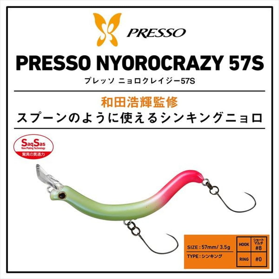 スプーンのように使えるシンキングニョロ!前作のクレイジー45SSを和田浩輝監修でブラッシュアップ!!エリアトラウトマイスター和田浩輝監修。タフで反応しにくい魚に対しても独自の形状からくるウネウネとしたアクションで魚の好奇心をかき立てスイッチを入れる。◆投げてゆっくり巻くだけで 独自の形状からくるニョロ系ウネウネアクションでアピール。◆頭と尻尾を曲げた、ひらがなの「ひ」のような形はアクションしたときの見た目がスムースにつながり、尻尾(フック)が左右に振れ過ぎずフッキングさせやすい。◆リップの面積が大きくなり、左右に張り出すことでスローに引いてもレスポンス良く、大きくボディをくねらせる