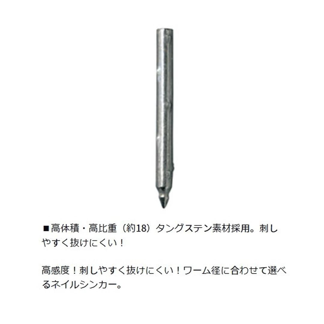 高感度!フルタングステン製ルアー用シンカー。刺しやすく抜けにくい!ワーム径に合わせて選べるネイルシンカー。高体積・高比重(約18)タングステン素材採用。ノーマルパックとお徳用PROパックを展開。※ネコリグ、ワッキーリグetc