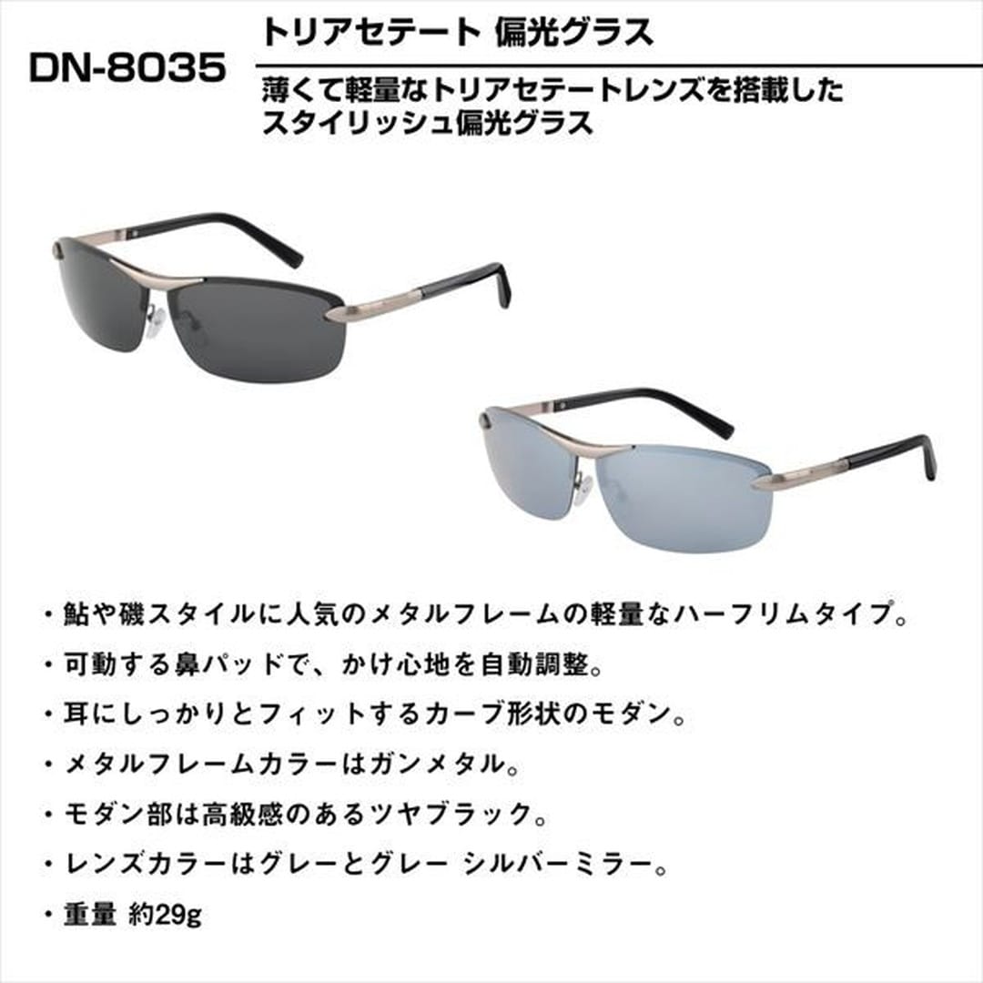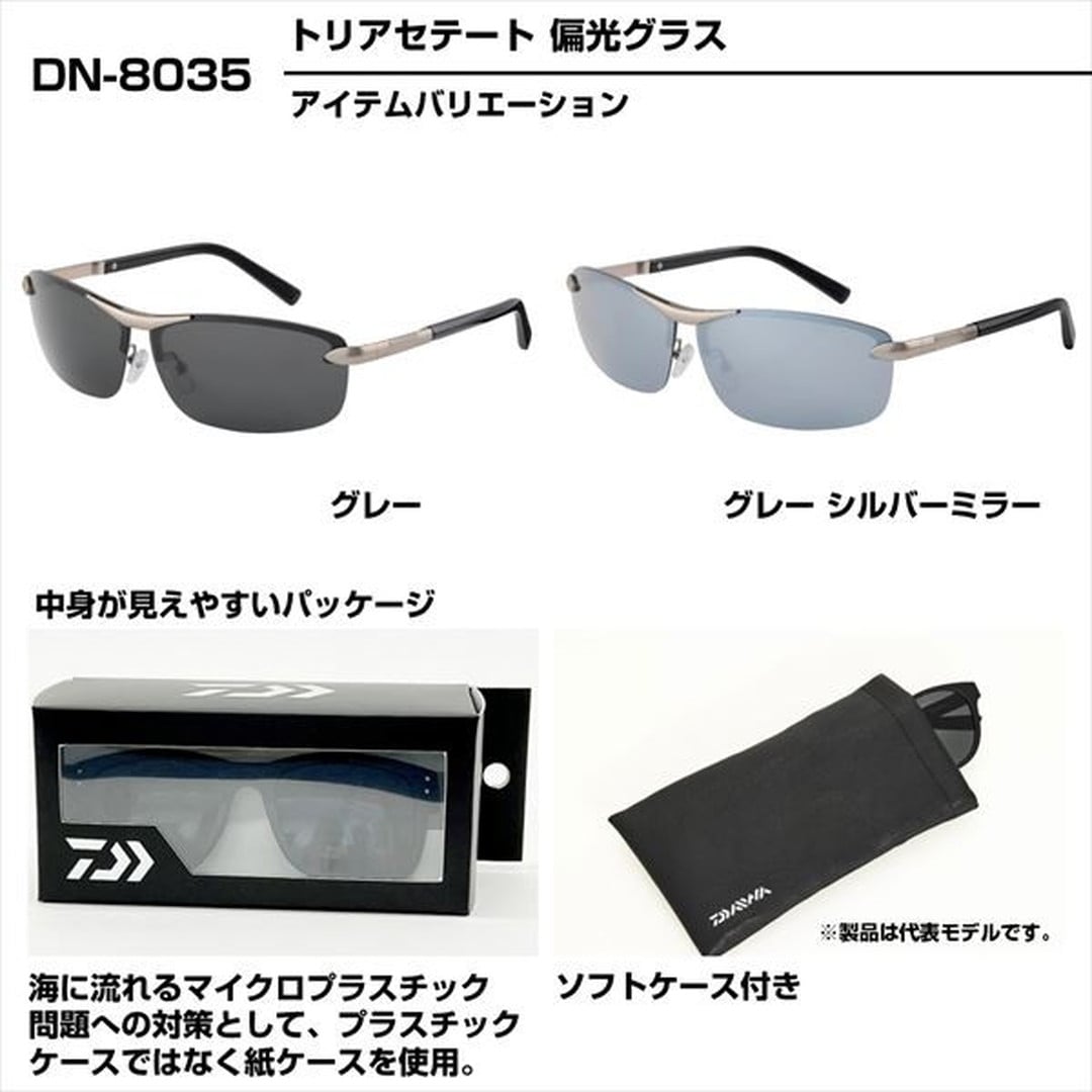 薄くて軽量なトリアセテートレンズを搭載したスタイリッシュ偏光グラス。薄くて軽量、偏光機能にも優れたトリアセテートレンズを使用。傷に強い両面ハードコート搭載でソフトケース付き。レンズは2カラー展開(グレーとグレーシルバーミラー)。鮎や磯スタイルに人気のメタルフレームの軽量なハーフリムタイプ。可動する鼻パッドで、かけ心地を自動調整。耳にしっかりとフィットするカーブ形状のモダン。メタルフレームカラーはガンメタル。モダン部は傷が目立ちづらいマットブラック。