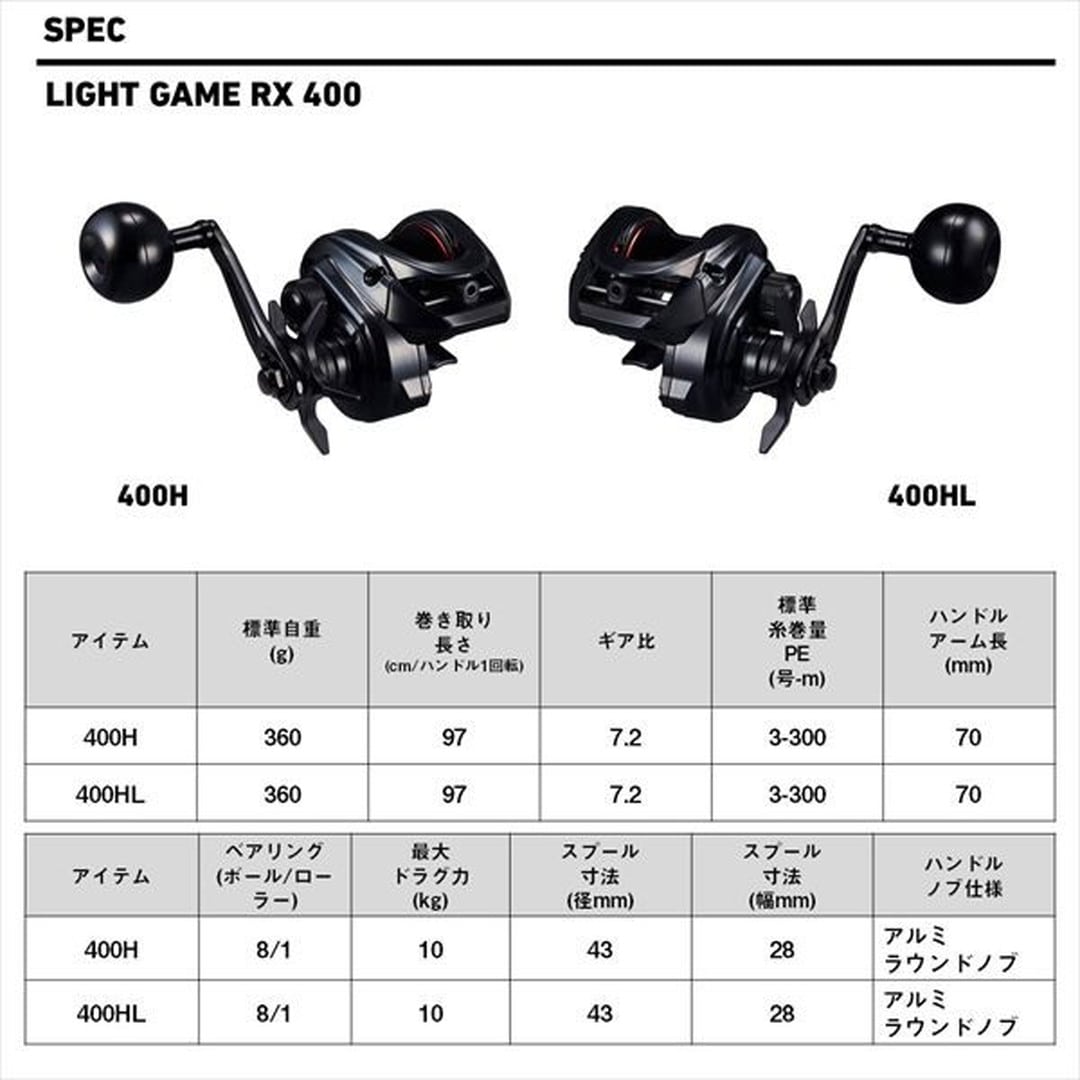 ダイワ ベイトリール ライトゲーム RX 400H (右)