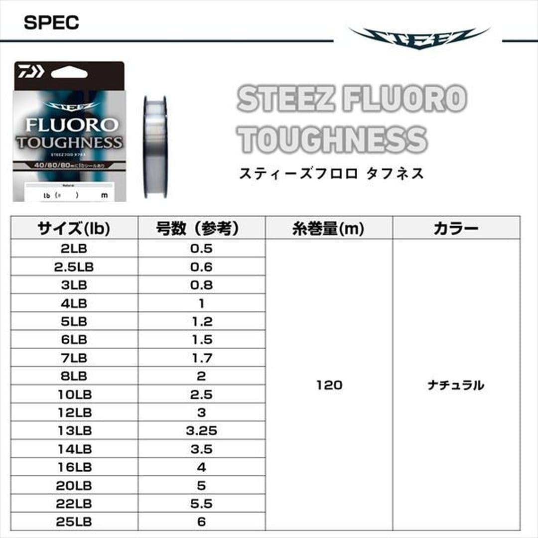 高い耐久性を追求した「タフネス」仕様のスペシャルライン。「タフネス」フロロラインハードな使用に耐え、長く使える。高強力フロロカーボンライン。厳しい検査基準をクリアしたスペシャルラインのみを使用。リールに貼って使える「lb表記マーキングシール」付き。40/60/80m部にシールがあり、リール・リグに合わせて最適な長さで使いやすい。リールに巻いたラインの「lb数」もわかる。2~25LBをラインアップし、様々なリグ、シュチュエーションに対応可能。糸の性能を損なわない平行巻DPLS。どんな水色にも馴染みやすいナチュラルカラー。