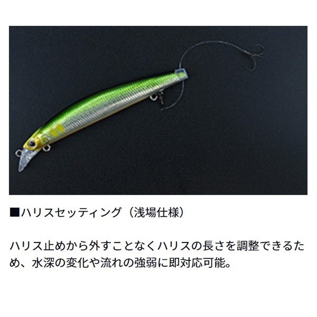 イカリの高さを調整できる2WAYルアー!後方に軟質材で出来たハリスキーパーがあり、そのハリスキーパーにハリスを挟み込むことにより、イカリの位置を高くし、根掛りのリスクを減らし、浅場攻略が可能。また、通常使用においても、従来のAYUINGミノー同様、後方アイの後ろに埋め込まれたマグネットにより、スプリットリングを固定し、イカリをまっすぐ後方へ垂らし、川底付近をじっくりと攻めることもできる。