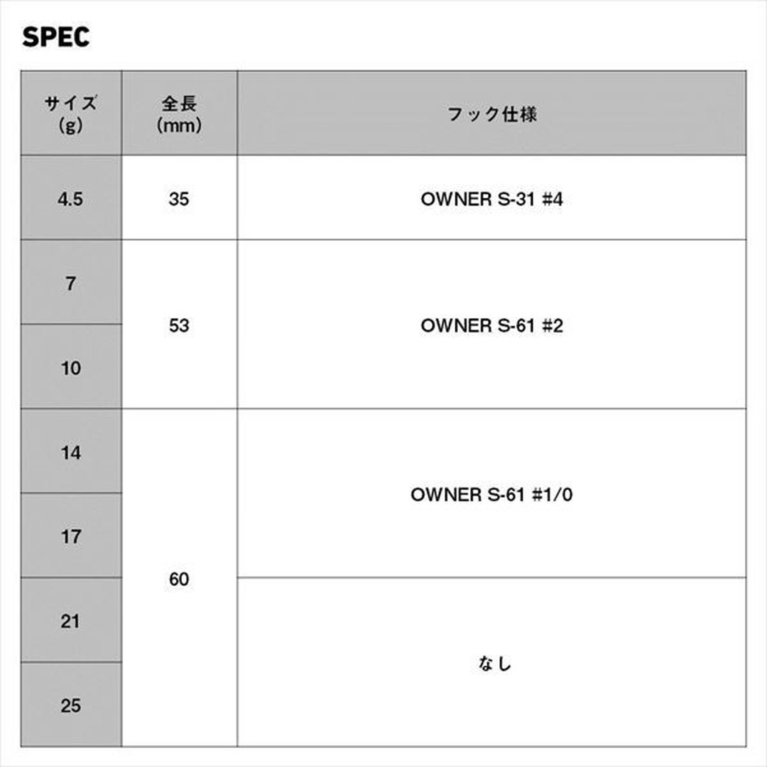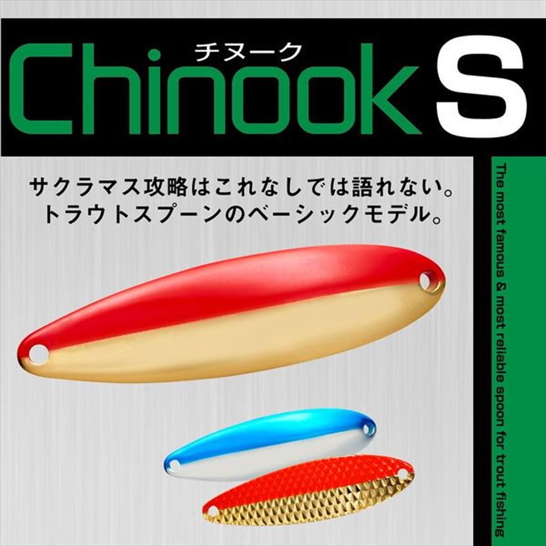 トラウトスプーンのベーシックモデル。発売以来多くのトラウトアングラーから支持されてきたチヌークS。これは実績に裏打ちされた結果でもあり、特にサクラマス狙いにはなくてはならないルアーとなっている。10g、14g、17gには、サクラマスを中心としたビッグトラウトを狙うアングラーを対象にボトムトレースでも根掛かりしにくいフォルム、ホールドの良いゲイプフォルム、アイ方向に向いたカッティングポイントがしっかりしたフッキングを行うOWNER S-61シングルフック仕様をラインナップ。 形状は細身のシェイプと肉厚形状。「よく飛び・よく沈み・よく泳ぐ」と3拍子揃ったベーシックな泳ぎで、ここぞという時の頼れる1本。流れの速いポイントや高速リトリーブ、深場攻略など状況を選ばず使える点も特長。カラーはトラウトに必須のベーシックカラー(ゴールド・シルバー・シルバー×ブルー・ゴールド×レッド)を中心にタイガー、ヤマメパターンもラインナップ。ハンマー加工モデルもあり、同色でありながらアピールの違いを演出。