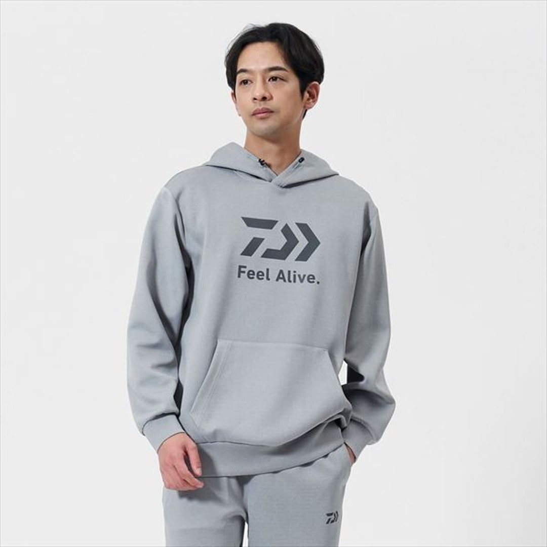 レインウェアの中着として使い勝手の良いスウェットフーディー。シンプルで普段着にも着用しやすいスウェット。加えて肌面側には遠赤外線を発するダンロテック素材を使用し、極寒時の釣りをサポートする。極寒時に便利なフード付きで、フード周りは調節可能なアジャスター付き。