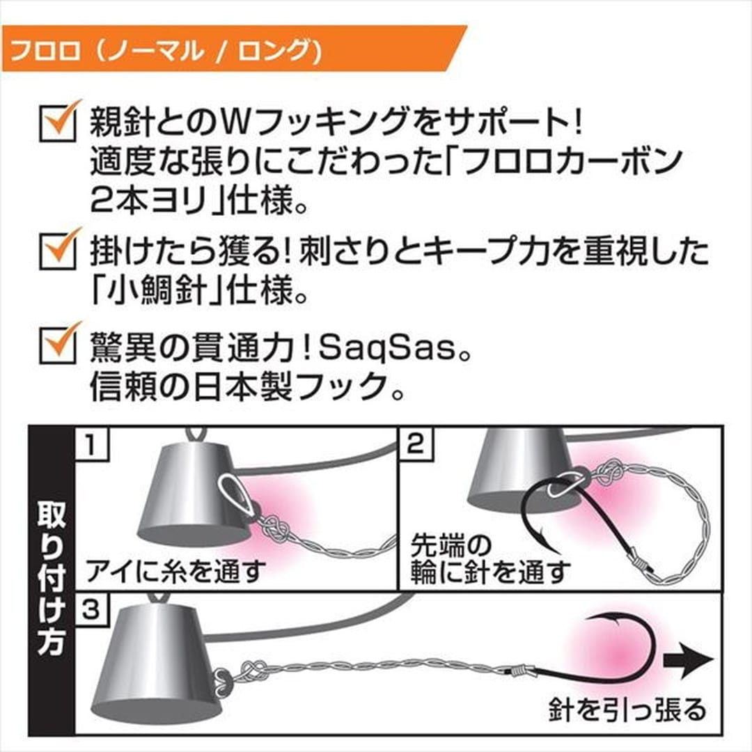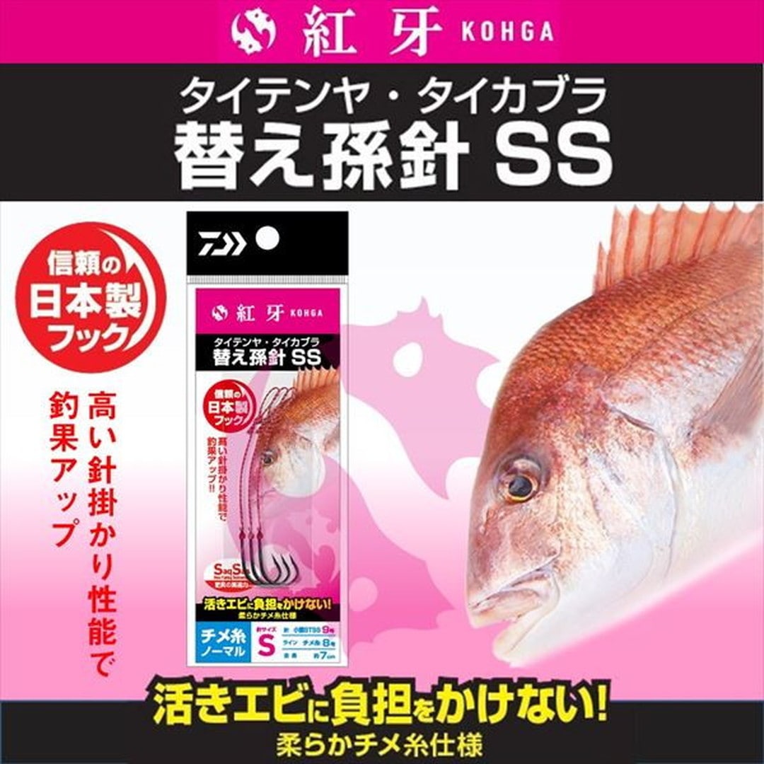 リアクション釣法対応やわらかチメ糸仕様。チメ糸・・・小型活きエビの頭に負担をかけ辛い柔らか「チメ糸」仕様。マダイの口を捉えることに特化した「ストレートフックポイント大型小鯛針」仕様。驚異の貫通力サクサスフック。