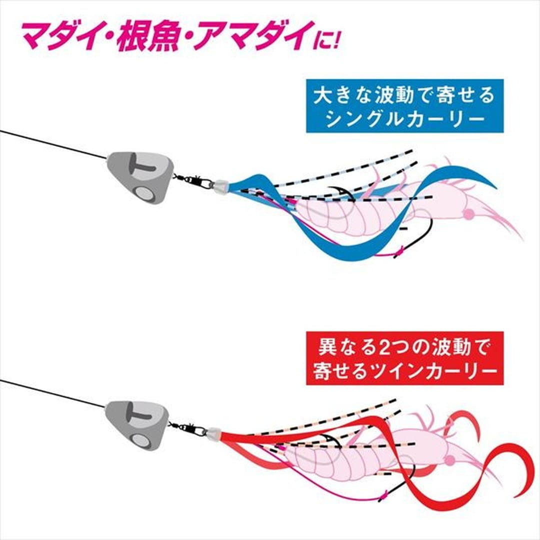 エビラバ対応!遊動テンヤ用替え針。お手持ちの遊動テンヤに結ぶだけでボリュームアップ楽々!アピール力抜群!!ターゲットの視覚に訴える高アピール仕様に。簡単・迅速にネクタイ交換ができるユニット「βシステム」採用。驚異の貫通力!サクサスフック搭載。フロロ芯入りPEライン仕掛け糸で絡み激減。マダイはもちろんアマダイや根魚に高アピール!
