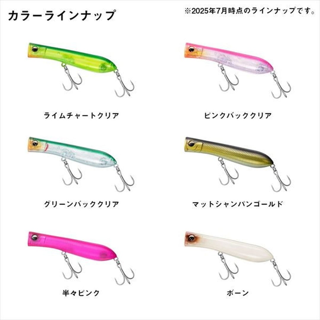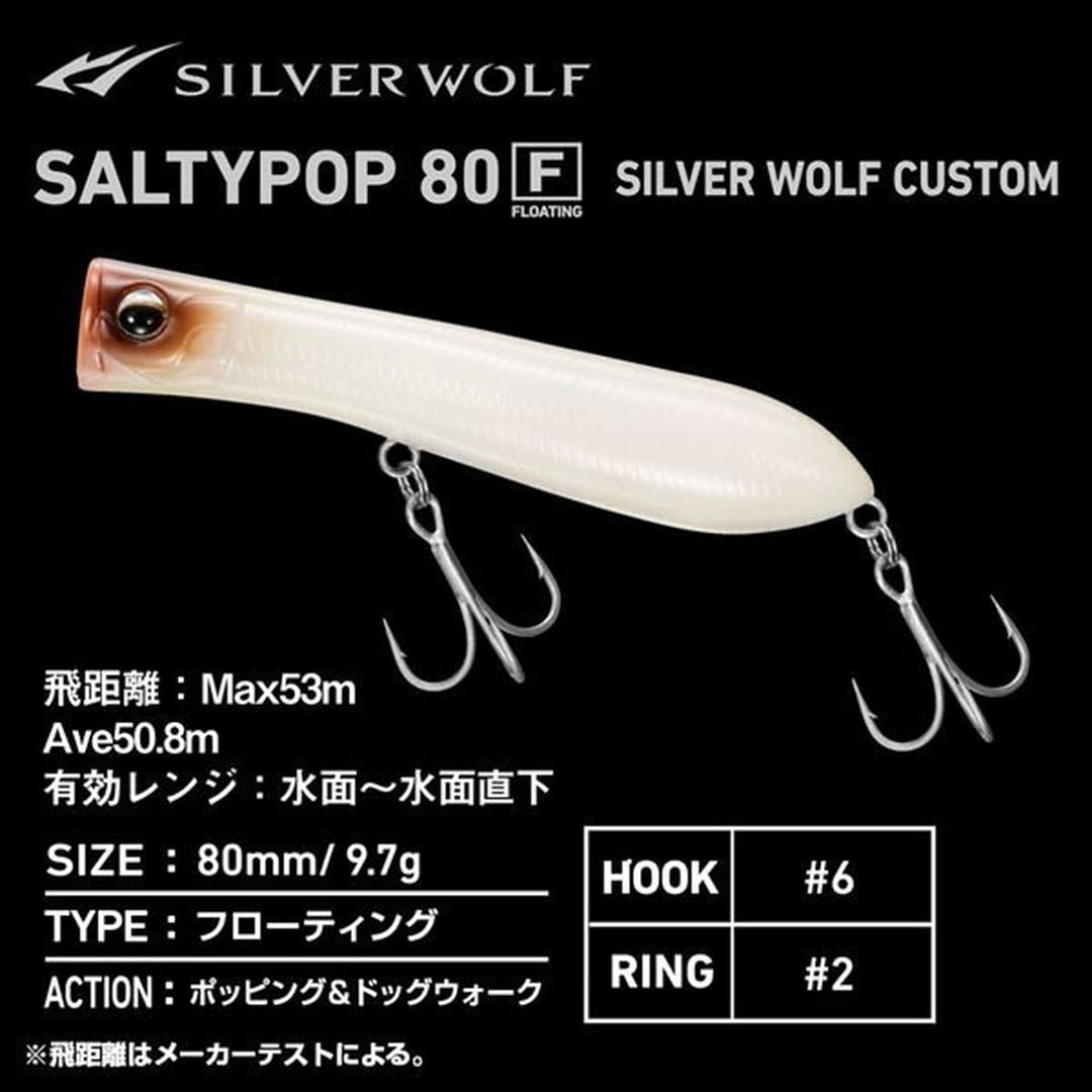 ぶっ飛びバーサタイルポッパー「ソルティーポップ」に、チヌトップゲームのためのカスタムカラー仕様が登場。幅広い魚種を狙えるバーサタイルポッパーとして人気のソルティーポップ80Fに、シルバーウルフカスタムカラーが登場。強い横風にも負けないキャスタビリティの高さと、ビギナーからエキスパートまで誰にでも扱いやすい軽快な操作性から、すでにチニングシーンでも高い実績を上げているこのルアー。更なる釣果を求めるアングラーのために、シルバーウルフシリーズで人気のカラーを移植した。また、カップのカラーリングを蛍光オレンジに変更したことで、アングラーからの視認性向上に寄与している。チヌトップ用に最適化されたソルティーポップで、エキサイティングなゲームを楽しんでほしい。