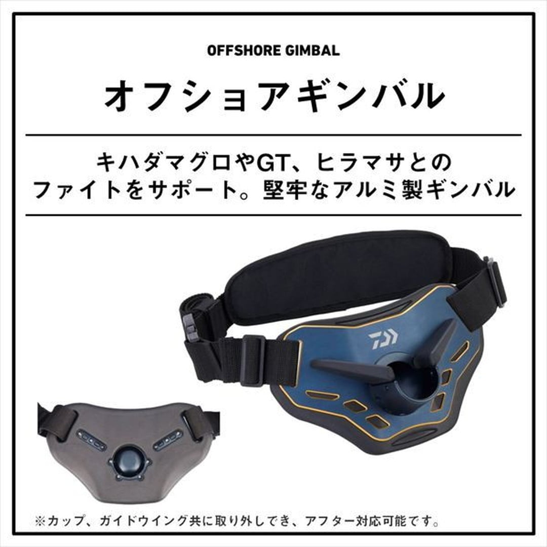 キハダマグロやGT、ヒラマサとのファイトをサポート! 堅牢なアルミ製ギンバル。◆50mm幅広ベルトで腰回りが安定しファイトがしやすい ◆幅広サポートパッドでアングラーの負担を軽減 ◆マシンカットで精巧に作られた堅牢カップ(45mmのグリップエンドまで対応) ◆ガイドウイングによって不意の大物でも竿尻をスムーズに収納可能 ◆着脱可能なサポートピン付属 ◆カップ、ガイドウイング共に取り外しでき、アフター対応可能