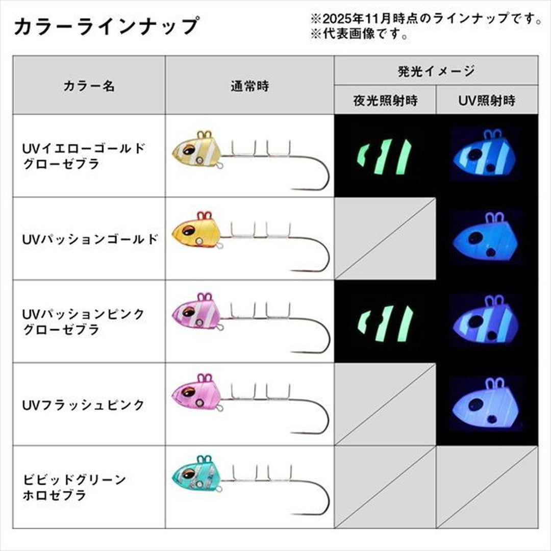 タチウオが狂う!MR(ミラー)仕様テンヤが遂に登場。ローリングアクション時のヘッド乱反射がタチウオのバイトを誘う。業界初MR(ミラー)仕様のタチウオテンヤ。バイブレーション釣法の確立により、テンヤのローリングアクションの重要性が増加。なににも負けないレベルの強烈なフラッシング効果(乱反射)がタチウオを狂わせる。MRはUV(ケイムラ)との相性が抜群。強烈な紫外線照射反応を起こす。クリアな水質、日中、低水温期で威力を発揮。冬場にかけての渋りタチウオ攻略のため、針はミドルフックサイズを採用(固定・針交換式)