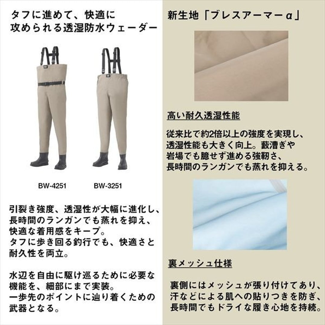 タフに進めて、快適に攻められる透湿防水ウェーダー。歩くたびに、自然は釣り人を試してくる。鋭い枝葉に擦られ、岩に打ち付けられ、汗をかきながらも一歩先のポイントを目指す。「そんな攻める釣り人」のために生まれたのが、ダイワのブレスウェーダー。引裂き強度、透湿性が大幅に進化し、長時間のランガンでも蒸れを抑え、快適な着用感をキープ。タフに歩き回る釣行でも、快適さと耐久性を両立した。水辺を自由に駆け巡るために必要な機能を、細部にまで実装。一歩先のポイントに辿り着くための武器となる。