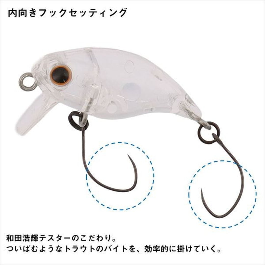 和田浩輝テスターのトーナメントシーンを支える戦闘力の高いハイフロートクランクが完成。見て、釣って楽しいサーフェスゲーム。ラトリンウェイクバグは、エリアトラウトマイスター和田浩輝監修のもと「喰わせ力」を磨き上げたハイフロートクランクである。基本テクニックであるストップ&ゴーでは、リトリーブ後にストップを入れるとフワっと浮上し、魚にスイッチを入れる。追ってきた魚が見切りにくくバイトしやすい速度を追求した。ロッドアクションとストップを織り交ぜて水面攻略も可能。リップ付きで移動距離を抑えながら波紋を立てて誘えるため、バイトを高確率でフッキングまで持ち込める。ボディ内部にはラトルを搭載!!
