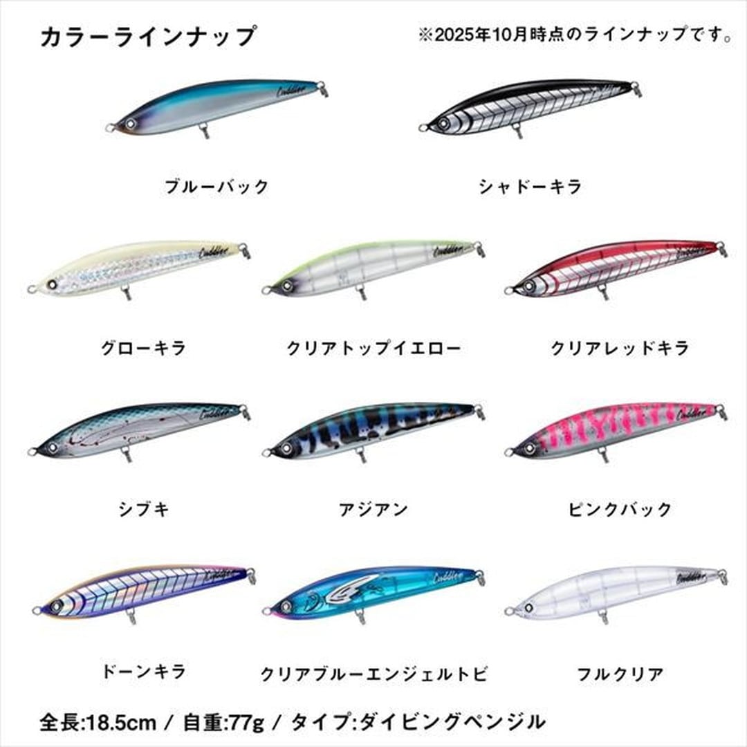 未知なる冒険へ!瀬川良太監修モデル。ソルティガカドラーに求めたものは、飛距離とタフコンディションでもしっかり泳ぐスイムアクションである。テールを絞り込み、空気抵抗を大きく減らし、強い向かい風や横風でもバランスを崩さない安定した飛行姿勢を可能にするフォルムにより、飛距離での大きなアドバンテージを生み出した。また、背面カウンターウエイトを搭載し、浮き上がりの姿勢にこだわり、水面が荒れていても同じ姿勢で浮き上がるように調整し、水面のコンディションを問わない水中へのダイブを可能とした。追求したアクションは立体螺旋S字アクションで、ボディ全体がワイドに動き、広範囲から魚を引き寄せる。