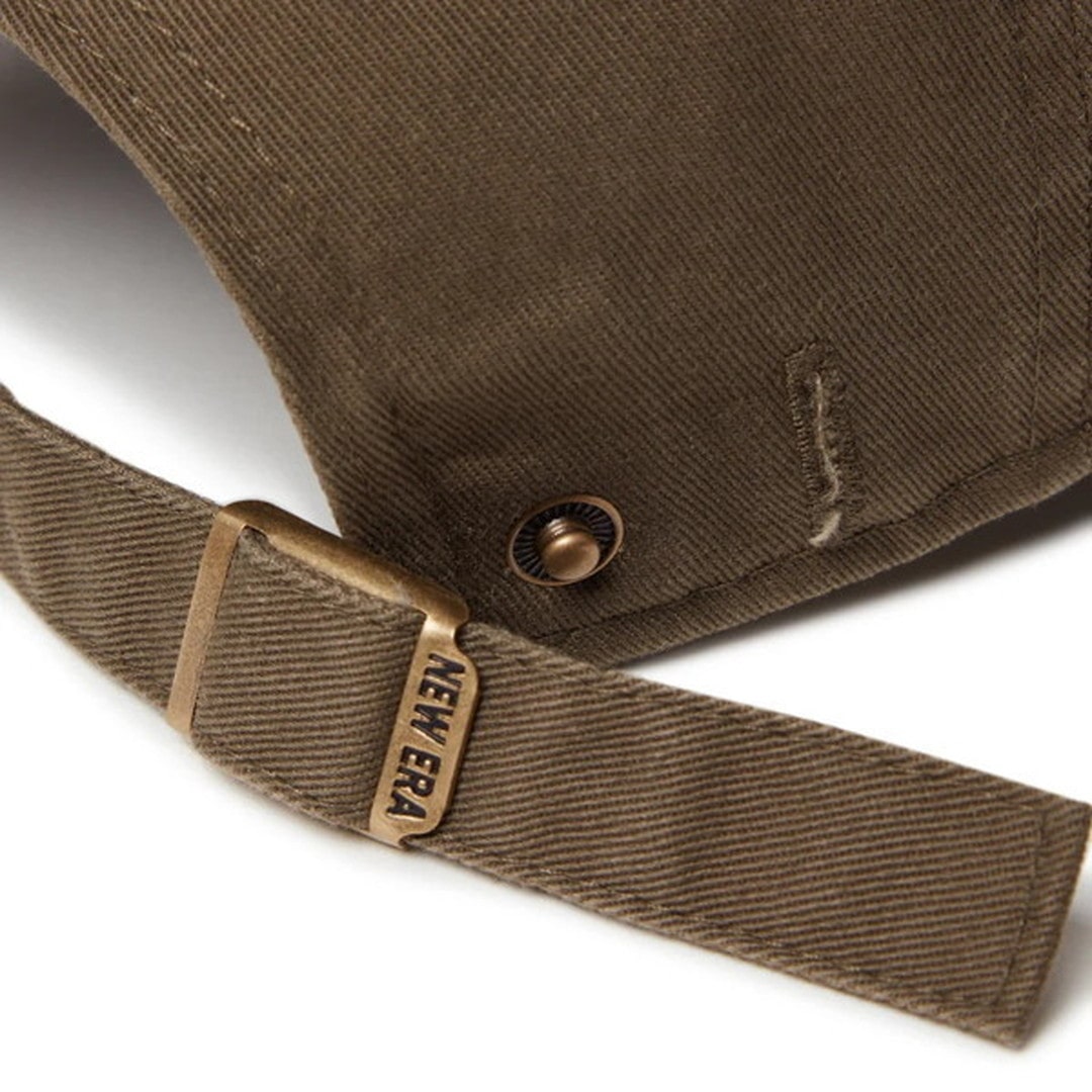 山並みから上る太陽をモチーフにしたオリジナルロゴデザイン。スウェットバンドには抗菌効果のあるMICROERAを採用。 トップボタンは錆をさけるプラスチック製。手洗いが可能です。シルエットはアジャスタブル仕様でサイズ調整可能な9FIFTYをベースに、より柔らかく低めのクラウンにすることでクラシックな被り心地に仕上げたRetro Crown 9FIFTY。フラットバイザー仕様。リアのストラップ(サイズ調整するストラップ)でサイズ調整が可能です。