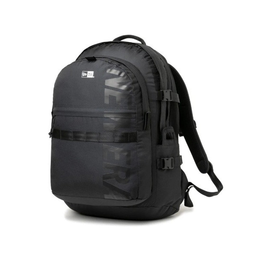 「ニューエラ」が展開するバックパックの中で最大級の容量を誇るキャリアパック。大容量かつ実用性のあるデザインで、タウンユースのみならずアウトドアシーン等でも活躍します。3層構造になったメイン収納部。細分化されたインナーポケット。ラップトップPCを保護する収納ポケット。ドリンク等の携帯に便利なサイドポケット。外側のストラップを活用し、スケートボードなどをアタッチ可能。搭載ポケットは別売りのキャップキャリアもぴったり収納可能。