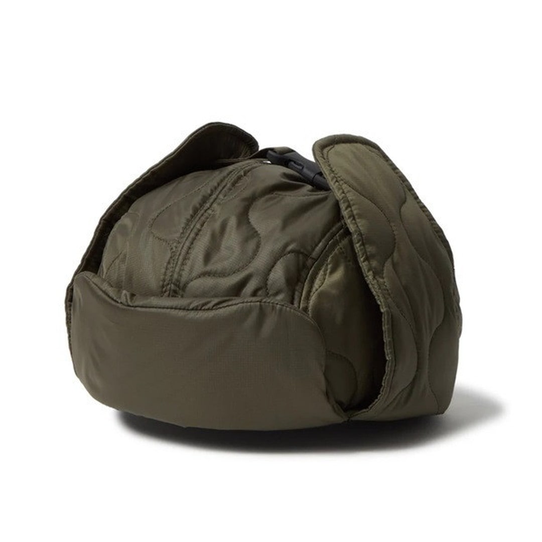 一部リサイクル原料を使用し、環境を配慮したフッ素フリーのC=ZERO撥水加工を施した軽量リップストップ素材を表地に採用。キルティングで防寒性をアップ。スウェットバンドには抗菌効果のあるMICROERAを採用。トラッパーは一般的にはフライトキャップに分類され、防寒性の高さから、ストリートのみならずウィンタースポーツシーンでも着用者が多いアイテムです。