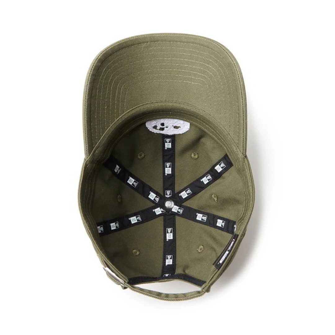 アウトドアモチーフのオリジナルロゴデザインをレイアウト。リアストラップにはAIM FOR THE HIGHESTの刺繍入り。トップボタンは濡れた際の錆をさけるプラスチック製。シルエットはフロント部分に芯がなく柔らかな被り心地が特徴。フロントパネルのトップステッチをなくし、スウェットバンドには薄く柔らかいコットンツイルを採用。バイザー(つば)はあらかじめ着用しやすい状態にカーブしています。イージースナップ(スナップボタンで着脱できるサイズ調整するストラップ)なので、バッグやベルトループなどに簡単に取り付けることができます。頭回り約55.8cmから59.6cmまでサイズ調整が可能です。