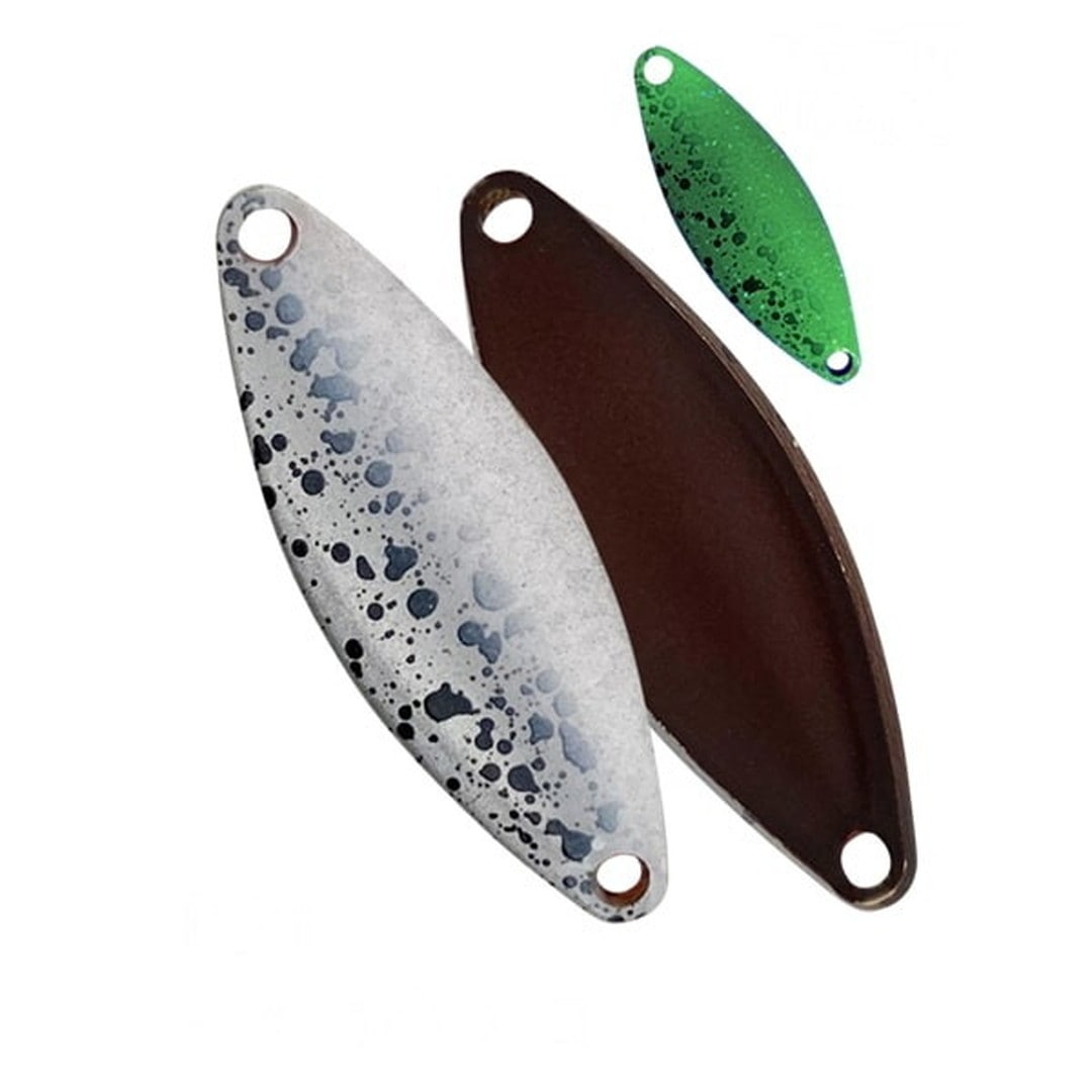 ポルコ最大の強みは、魚を飽きさせない異なる3つのアクションをスムーズに変化させられる点にある。基本アクションはウォブンロールだが、リトリーブ速度を落としていくと途切れることなく自然なローリングアクションへとスイッチする。またロッド角度を上げることでスタンドアップ(立ち泳ぎ)ロールアクションを演出することができる。このスタンドアップロールアクションを軸に戦略を立てれば、魚の目線から見たスプーンのシルエットに変化を与えられ、さらにはロッドを上下させる操作をプラスすればバーティカルな誘いを仕掛けることが可能となる。これにより、たとえ相手が喰い渋るトラウトであっても目先でアクションとシルエットに連続した変化を与えることでルアーとの距離を詰めさせ口を使わせるメソッドが成立する。警戒心を与えにくい洗練された細身のフォルムは、空気抵抗を軽減させた抜群の飛距離・浮き上がりを抑えた安定したレンジキープ力・フッキング時にはスプーンの暴れを抑制し、フッキングミスを軽減するなど計算された設計となっている。