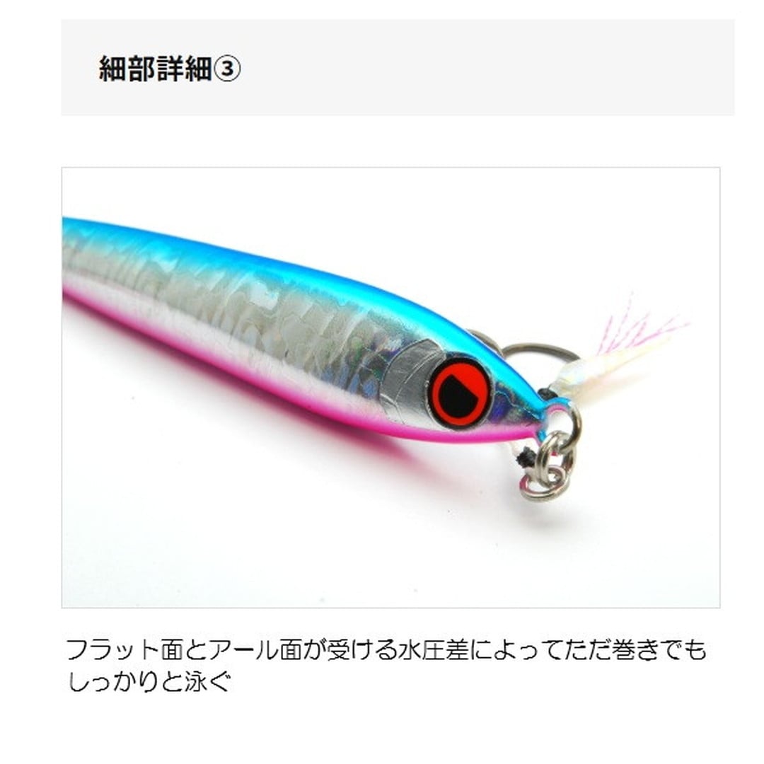 ●フラット面とアール面の左右(表裏)非対称デザイン。●ただ巻きでウォブリング、STOP&GOでクイックアクション。●フリーフォールではヒラヒラと大きくスライドしスローに水平フォール。●ウェイト毎に最適なバランスを追求したボディ設計。●そのまま使える魚皮ティンセル仕様の専用HOOK搭載。
