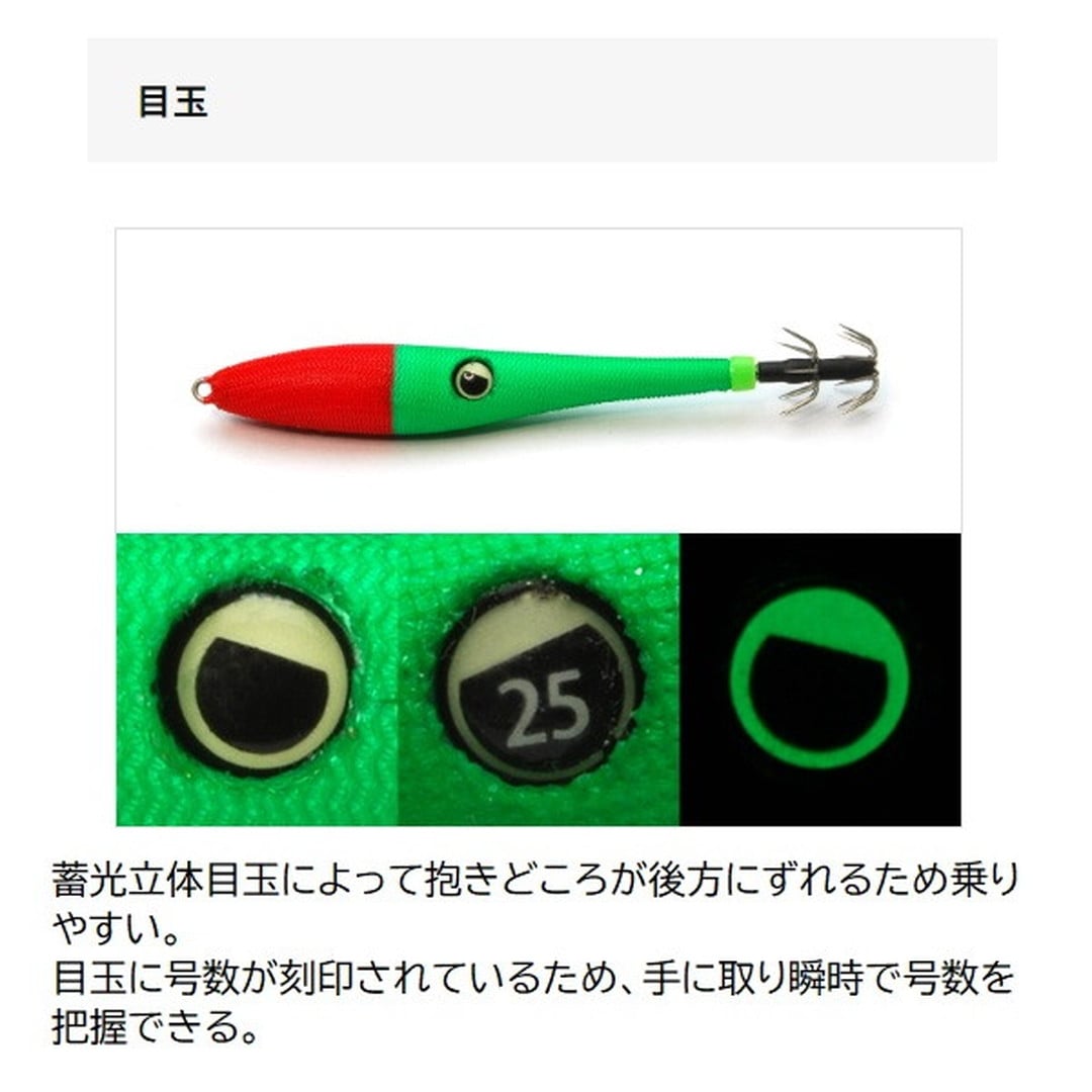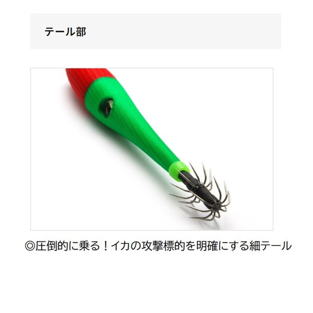 伝統的漁具を踏襲したイカ漁師直伝のシンプルデザイン。上下非対称フロントヘビー形状によるクイックアクションからのステイでイカを誘惑。15号(約57g)~40号(約150g)のラインナップで浮いたイカからDEEPや急流エリアにも対応可能。カラーバリエーションは定番カラーのみならず、夜光やブルー夜光、デイゲームにオススメの布無しなどをラインナップ
