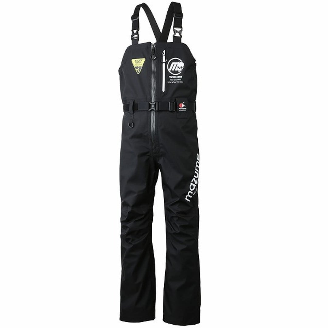 最大の特徴は4レイヤーという耐久性が非常に優れた防水・透湿生地を使ったことです。レインスーツに使われる透湿素材は3レイヤー仕様がほとんどですが、オフショアパンツIIIでは4レイヤーを採用し、とにかくタフであることを優先しています。そして、この丈夫な生地だからこそ、完全防水のYKK製アクアシールファスナーが使えるのです。着た瞬間に、オフショアフィッシングの臨戦態勢に入ることができるオフショアパンツ。ベルトループにインフレータブルウエストのベルトを通すことができ、胸ポケットにはスマホが入れられます。こうした状態で着用すれば、準備完了というわけです。プレジャーボートに乗ってひとりで出船しているときに、万が一の落水や漂流の際には、近海であれば命綱となるスマホを身に着けていれば連絡をとることができます。だから、スマホが入る胸ポケットが必要と考えます。また、ウエストベルトを締めてタイトな状態にすれば、落水の際に泳ぎやすい状態が作れます。フロントファスナーは荒れた海で船内トイレを使ってオシッコする際にとても重宝します。いちいち靴を脱いで着脱しなくても平気な、ブーツを履いたまま着脱できるブーツカット。まさに、オフショアフィッシングの戦闘服です。