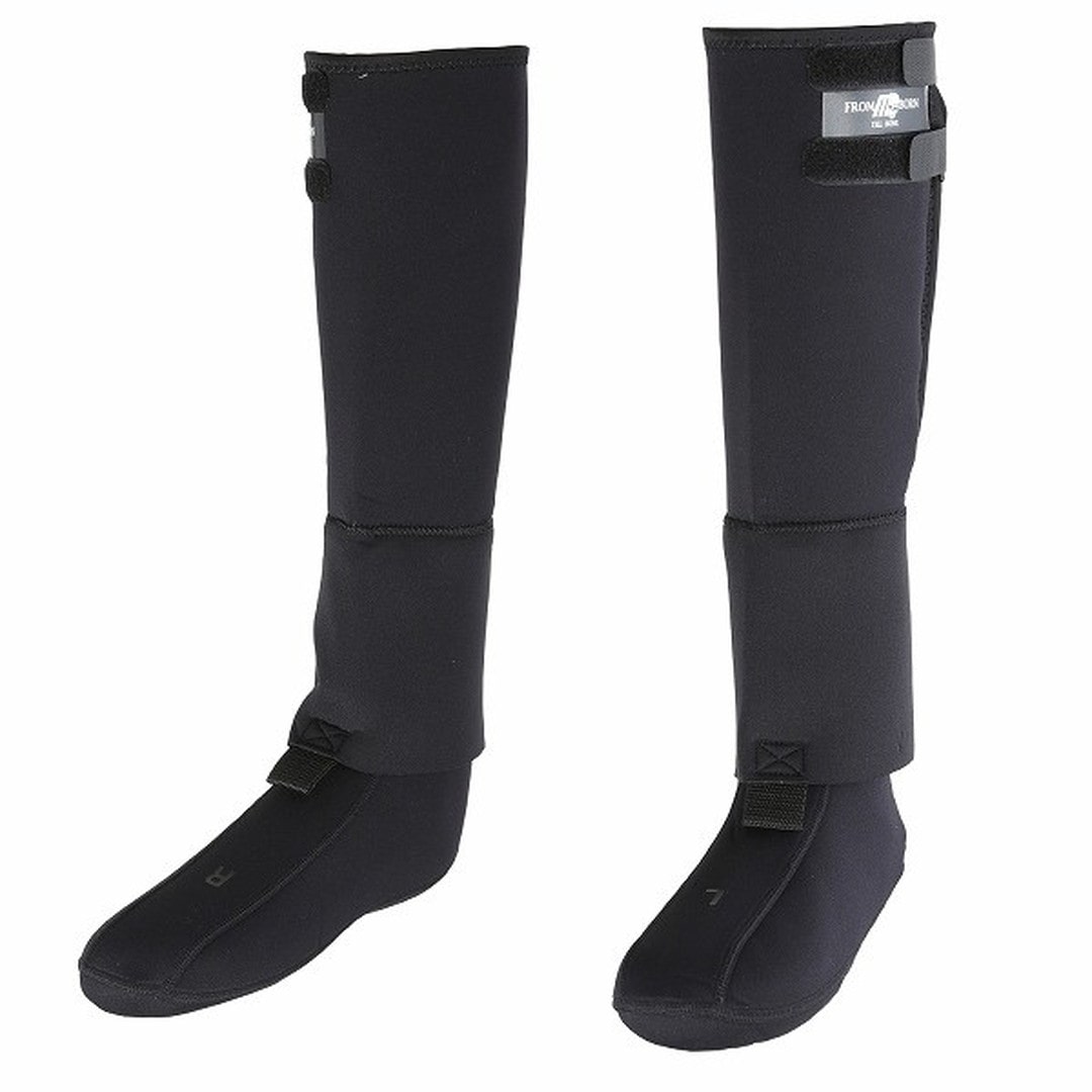 ライトウェットスタイルで使い、ウェーディングソックス+ゲーター+グラベルガードの役割があります。足の保温力のアップ、転倒時のスネの保護。加えて小石がウェーディングシューズの中に入ることを防ぎ、靴ヒモがほどけにくくします。ライトウェットタイツやラッシュタイツ、ドライパンツの上に装着します。ウェイダーを履かないで水と親しみながら釣りをすることを、mazumeではライトウェットスタイルと呼んでいます。たとえば磯のメバル、アオリイカ、ヒラスズキ、ヒラマサ。サーフのヒラメ、コチ、青物。渓流や本流でのルアー&フライフィッシングまで。基本的な使用用途はラン&ガンスタイルの釣りで水温20℃を上回ったらライトウェットスタイルを快適に楽しめます。○○用というカテゴリーに縛られることなく、1着持っていれば、あらゆる釣りに使えるのがライトウェットスタイルのギアです。