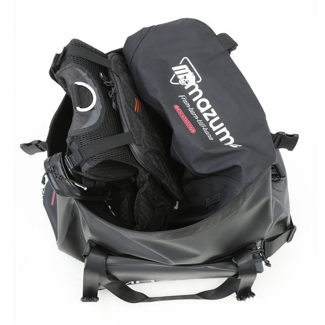 濡れたものを収納するときに最適な、大容量のウォータープルーフバッグです。ウェーディングギアやウェットスタイル一式を余裕で収納可能!!【収納例】1、ライジャケ+ウェーダー+レインジャケット2、ウェットスーツ+スパイクシューズ+ライフジャケット★ショルダーベルト付きで持ち運びも楽チン!中身に余裕があれば、本体上部の2本のベルトを締めることでバッグをコンパクトにできます。車内でかさばらないので、遠征の際にも非常に便利です。ボートフィッシングのときも、自分の持ち物をひとつにまとめられます。フロントポケットは前モデルより大型し、リーダーやルアーケースもしっかり収納できます。素材はポリエステル両面TPU樹脂加工を施した防水生地、耐久性も非常に優れています。※フロントポケットのファスナーは止水ファスナーです。完全防水仕様ではありません。