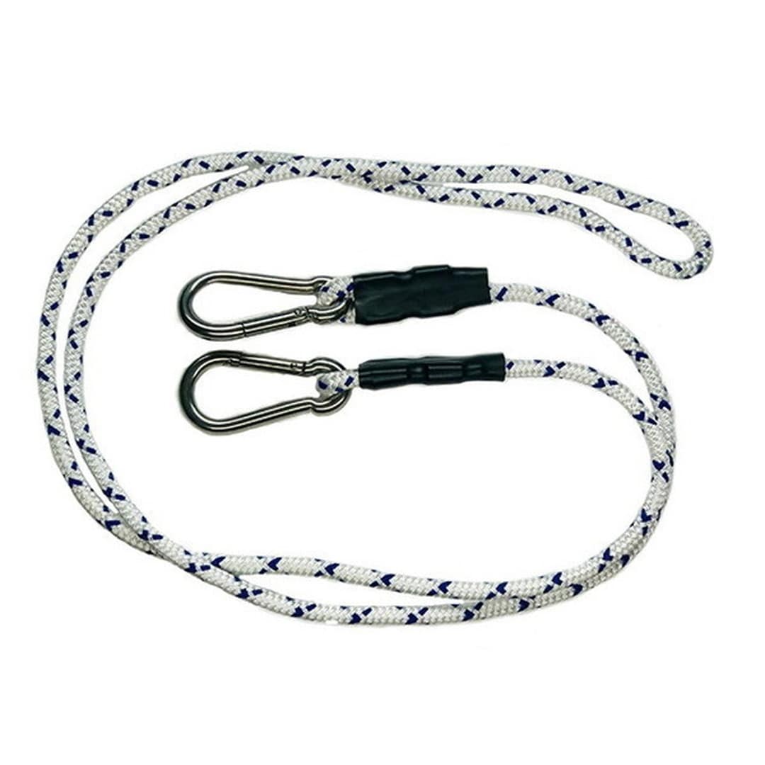 磯での釣りは、波や風で荷物を失う危険と常に隣り合わせ。まずはチャランボを打ち込み、ロープの片方のフックをチャランボのネジのリングにかけ、自分の全ての荷物の持ち手にロープを通したら、もう一方のフックをリングにかけて使います。これ以外にも荷物(クーラーボックス、バッグ、ロッドケース等)同士の持ち手などを通してカラビナ同士を掛けます。これで万が一荷物が流されそうになった時にもロープを掴むか足で留めるかすれば流出する荷物を止めることが出来ます。もし流されても、クーラーボックスを通していれば海上に浮くはずです。