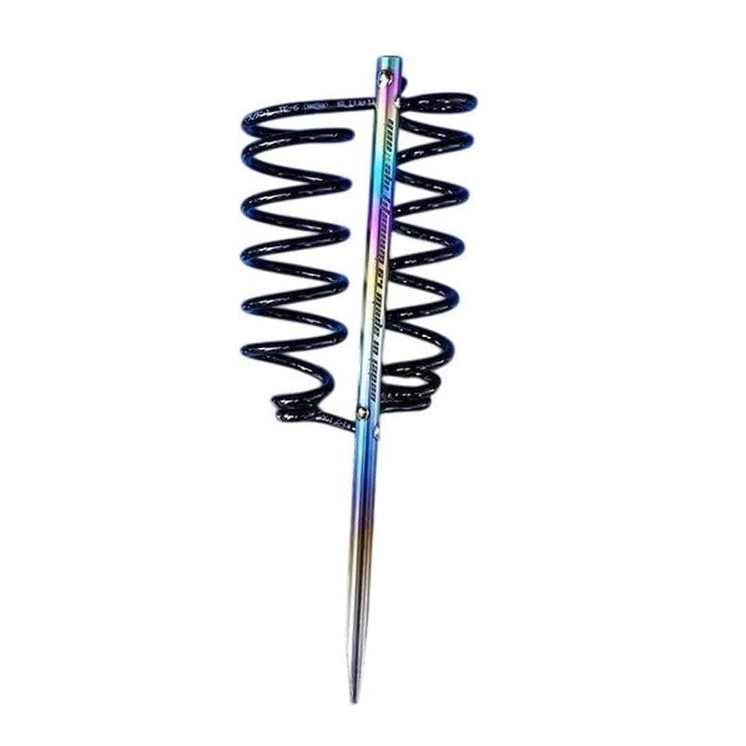 総64チタン製ダブルスタンドの登場です。ピトン部はもちろんコイル部も最強、最軽量の64チタン製。サビ知らず、驚きの軽量性(わずか258g!)風やその他の影響にも傷つき防止チューブ付きスプリングが優しく対応します。※コイル部及びその他も手加工部分が多いため、製品ごとの差異がございます。予めご了承くださいませ。