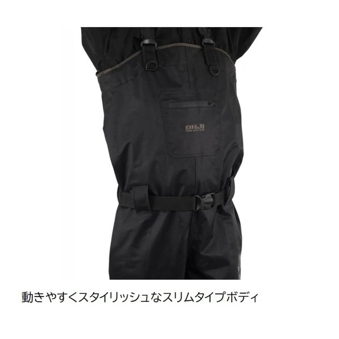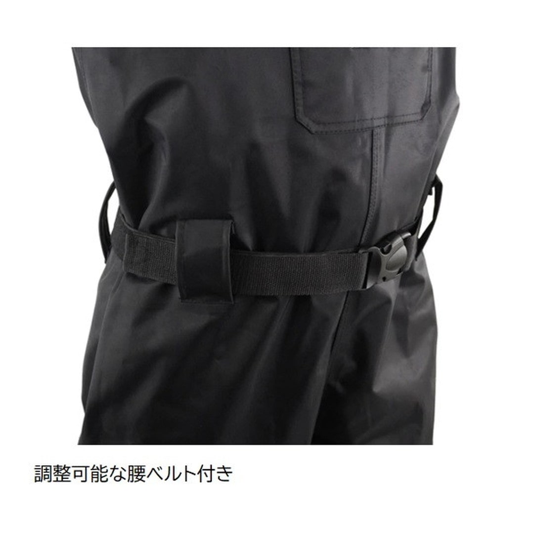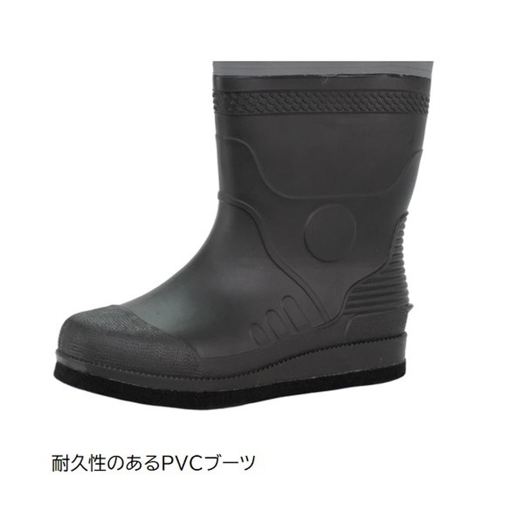 胸まで覆う万能型のチェストハイウェーダー。 胸元まで丈があるため、深い水深から浅瀬まで、海や川など、あらゆる釣り場でオールマイティーに使用できる定番のウェーダーです。 シーバス釣りで深場に立ち込む際や、湖でのトラウト釣りにも最適です。 動きやすくスタイリッシュなスリムタイプボディ 通気性が良く着脱も容易なインナーメッシュ仕様 耐久性のあるPVCブーツ。 かかと部分には突起形状のキックオフが備えてあり、容易に着脱が可能。 足場の悪い釣り場で、滑らずに歩行するために設計されたフェルトスパイクシューズ。フェルトに金属のスパイクがついているフェルトスパイク底が、ゴツゴツした岩場や、海藻が生えた滑りやすい場所でもグリップ力を発揮。
