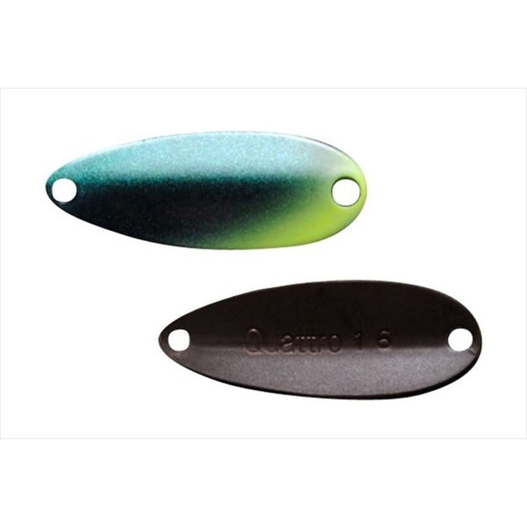 超ハイプレッシャー対応!ロールアクション系マイクロスプーン。ちびクワトロスプーンはリトリーブ時にスプーンの先端が左右にブレることなく、綺麗なロールアクションを発生します。 スモールサイズのシルエットとロール主体の喰わせ系アクションにより、スレた魚を狙って釣る事ができ、ハイプレッシャー時に抜群の威力を発揮するスプーンです。 細かく分かれたウェイトバリエーションにより、表層から中層までがターゲットレンジとなります。