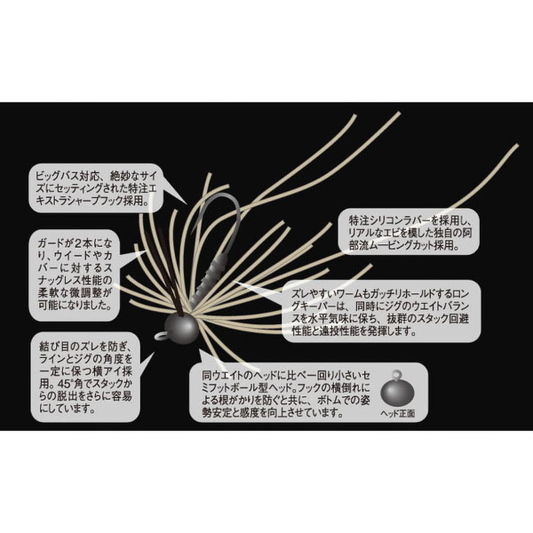 圧倒的根掛回避型スモールラバージグ。ショアのカバーや濃いウイード、ブッシュ越しのキャストなど、これまでのアベラバではひるむようなシチュエーションのためにツインガードは生まれた。ブラシではなくツインガードのため、フッキングを妨げる要因は極わずか。ベイトフィネス等の繊細なタックルでも、フックセットに問題ないことはテスト済みです。ガードを広げることでガード力を落とすことができるため、状況に応じた任意のガード力を選択することが可能です。