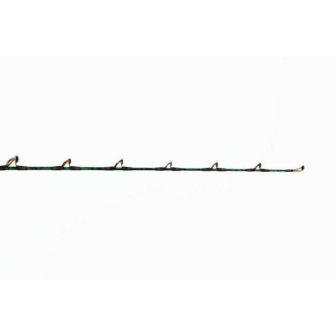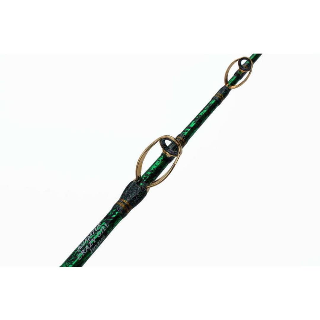 品番:BRAVE全長:1.75m継数:1本仕舞寸法:1.75m自重:約610g先径:2.0先径:2.0元径:14.0錘負荷:120-200号適合ハリス:60号カラー詳細チップ:黒/緑プルトス(オプション) ガイド下:黒/緑プルトス ガイド止め:035 ワンポイント:011×2(オプション) ガイド、リールシート、バット:ゴールド ATプレート緑(オプション)