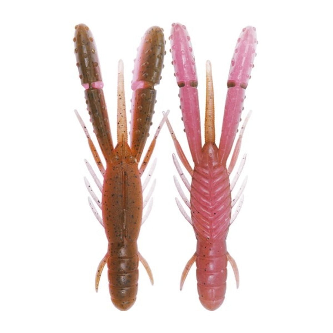 独自のスリットインパドルが水をつかみ、左右にブルブルと震えるライブリーアクションを発生。分厚いパドルの側面で水を叩く強い水押し波動と相まって、バスの本能を強烈に刺激します。ダディはスリットを湾曲させることで可動域を増やし、レスポンスを向上させました。また、上下のロッドワークでもしなやかにスイングし、ホッグ系特有のタテ方向の水押しでもアピール。上下左右の異なる刺激でバイトを頻発させます。フラットタイプのピンテールは着底後、パドルが倒れ込んだ後に左右にピリピリと震え、時間差による自発的アクションでポーズ中のバイトを促します。ダディは1対のみ異形状のレッグを設けることで、アクションと波動を複雑にし、バスに見切らせにくくする効果を高めました。レッグとは逆向きに設けた1対の逆手は、フォールスピードにブレーキをかけつつハイピッチにバイブレーションし、サスペンドバスのバイトを促します。比重は、自然な水中姿勢と強い水押しを兼備する塩の含有量を吟味。エビ・イカ・ベイトフィッシュの粉末をトリプル配合。
