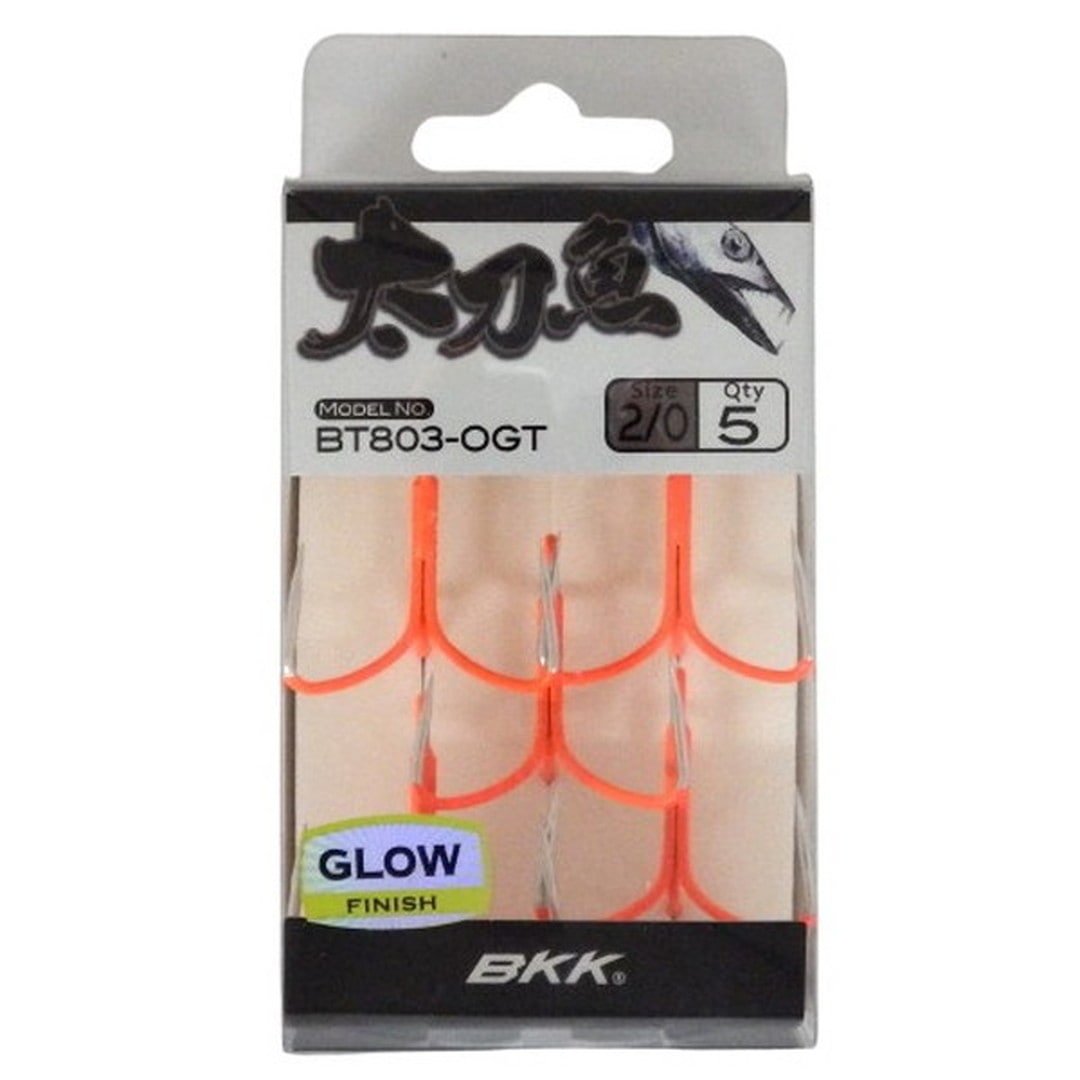 針本体へ加工されたオレンジグローがバイトマーカー的な役割も果たし、鋭い歯でのラインブレイクも軽減出来る優れもの。ストレートポイントで掛かりは抜群で、独自のハーフカットの針先は硬い顎(アゴ)も貫いてくれます。4本針ではなく3本のトレブルフックの為にメタルジグと非常に相性も良く、フックの自由度が増して太刀魚を確実にヒットに持ち込めます。