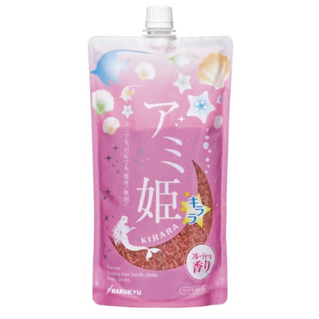 「キララ」と、しっかり粒でアピール。アジが好むとも言われる赤色を強くし、水中でも目立つ『キララ』を配合したサビキ釣り用配合エサです。しっかりしたアミエビの粒とキラキラ光る「キララ」が水中でアピール力を発揮。多くの魚を集め、足止め効果も期待できます。アミエビの独特なにおいをフルーティーな香りでマスキングしておりますので、アミエビの生臭さが苦手な方も安心してお使いいただけます。常温製品で、解凍する手間がなくそのまま使用が可能です。持ち運びもキャップ付きのため簡単です。「アミ姫」同様に手を汚さずにしぼり出すことができ、気軽にサビキ釣りがお楽しみいただけます。使い方はキャップを開けて、サビキカゴに注入するだけです。