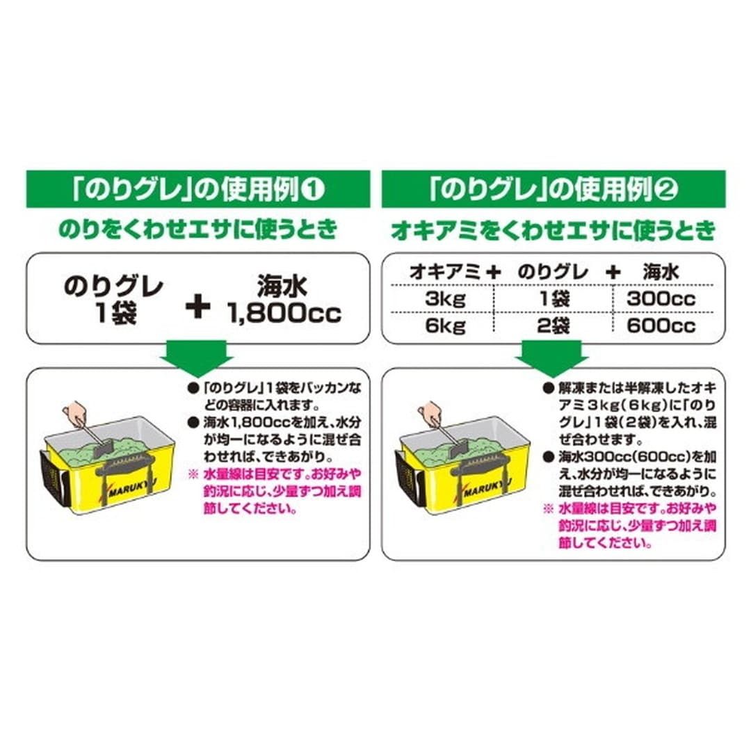 「のりグレ釣法」専用の配合エサ。付けエサにのりを用いる「のりグレ釣法」に効果的。配合されたのり、海藻、フィッシュソリブルの効果で食い気を高めます。単品でも。オキアミと混ぜてもOK。